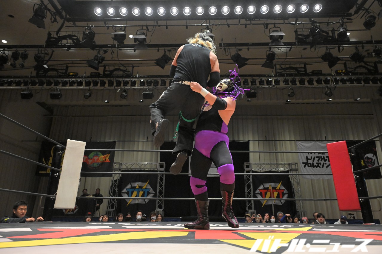 ガッツ「また正月明けで皆さんお金なくて迷惑だと思いますが、またTTTに付き合って後楽園ホールに来ていただけたらなと思いますので、皆さん応援よろしくお願いします!いつもの締めやろ?いつもの締め!TTTにはアントニオ猪木さんの『1!2!3!ダーッ!』みたいのがあるんですよ。みなさんと一緒にやりたいので、是非ご起立お願いします。俺が『シングル!ダブル!』って言ったら『トリプルT!』で締めますんで。皆さんお付き合いお願いします。行くぞーッ!シングル!ダブル!トリプルT!ありがとうございましたッ!」