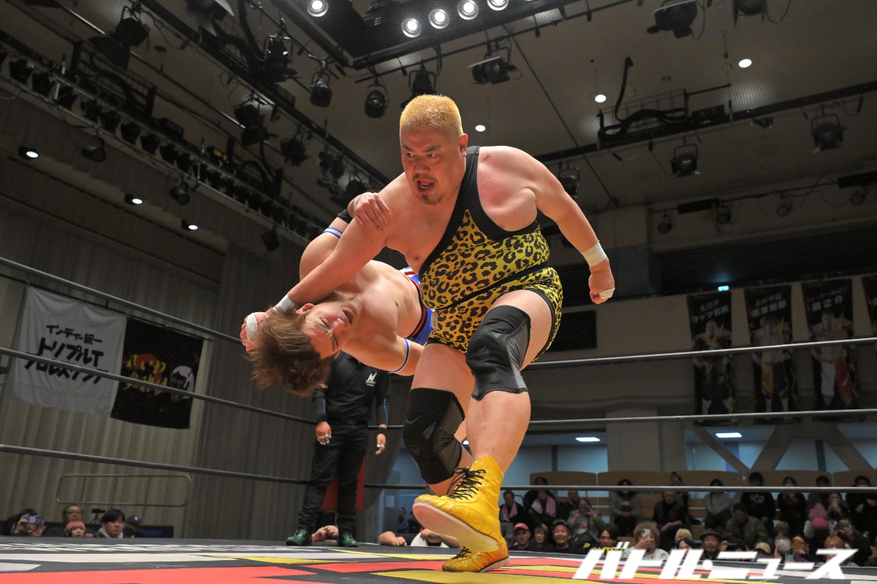 なお、バックステージコメントの最中には大家健が乱入してきて挑戦表明。学生プロレス出身という同じルーツを持つ2人は20年来の付き合いだが、意外にもシングルマッチの経験は少ない。