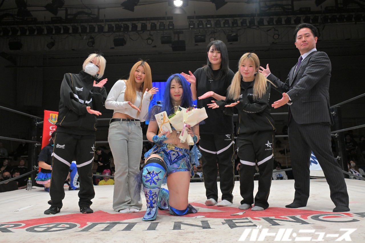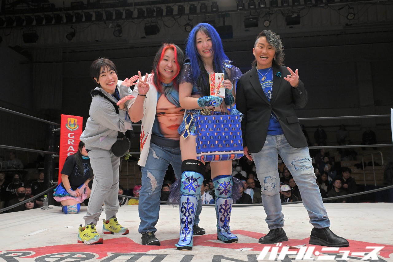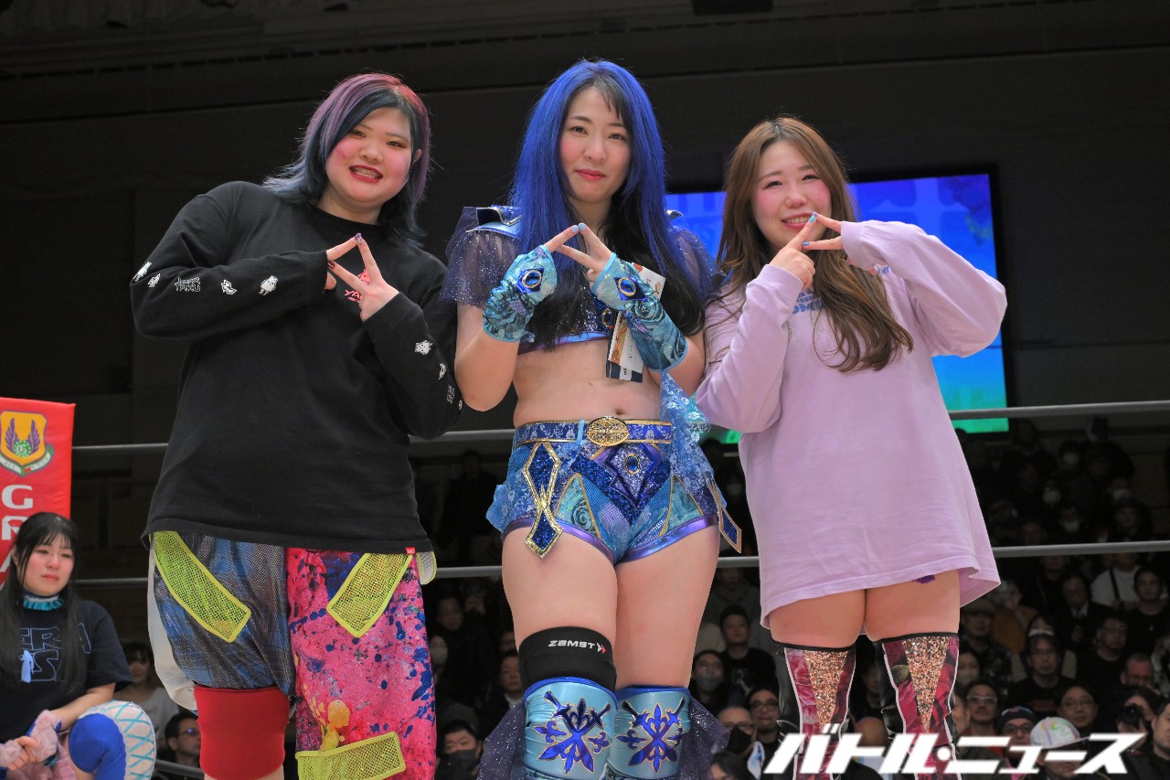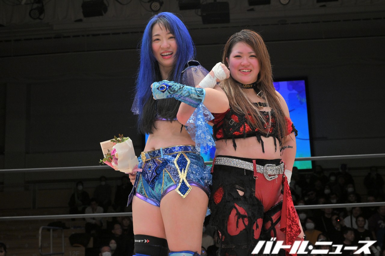 世羅から蒼焔を継いだちえと、世羅とタッグユニット“ブルーオーキッド”を組んでいた美蘭のタッグと、JWPやアイスリボンなどで戦ってきた世羅と2012年デビュー同期の鋼&SAKIのタッグが、最後のアジュール・レボリューションと対戦。