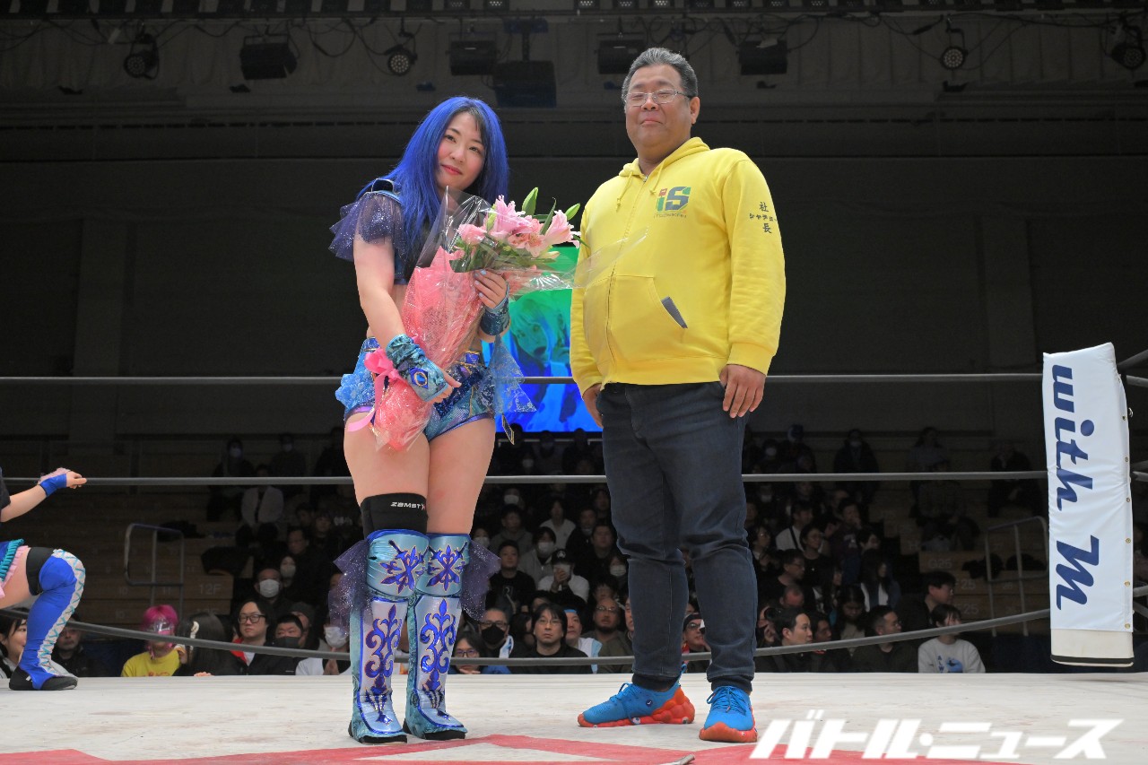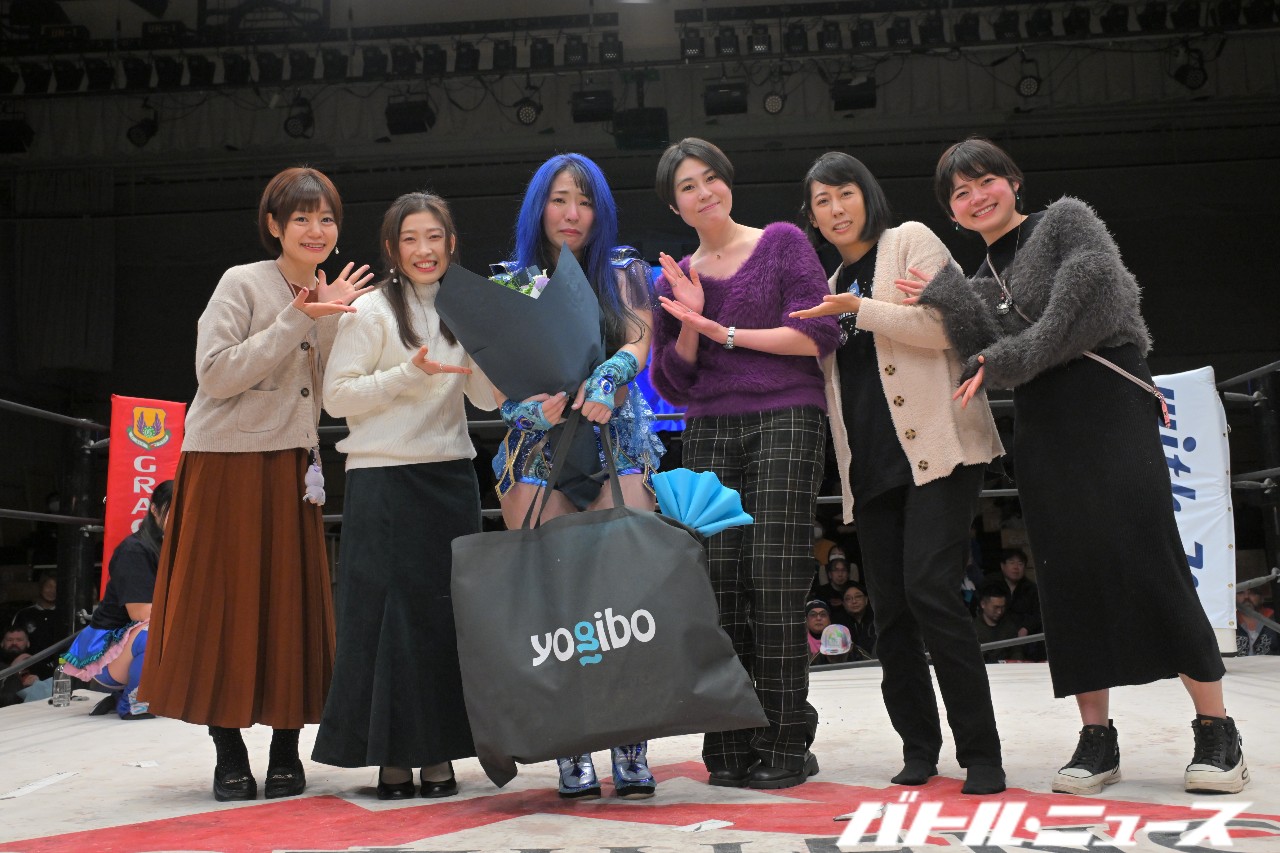 レッスルBINGOのスポンサー、週刊プロレス、配信チームと視聴者代表、ショーンキャプチャー(日高郁人、青木いつ希、あびこめぐみ)、篠瀬三十七&しのせ愛梨紗、FREEDOMS(佐々木貴、葛西純、ビオレント・ジャック)、COLOR'S(SAKI、清水ひかり、櫻井裕子、網倉理奈)、STARDOM(葉月、羽南、HANAKO、梨杏、岡田太郎社長)、センダイガールズを代表して高瀬みゆき、マリーゴールド(石川奈青、桜井麻衣、田中きずな)、PURE-J(コマンドボリショイ、Leon、中森華子、ライディーン鋼、大空ちえ、久令愛)ディアナを代表して美蘭、WAVE(桜花由美、狐伯、咲蘭、GAMI、炎華)、世羅りさ終活実行委員会プロジェクトメンバーがプレゼントや花束を贈呈。
