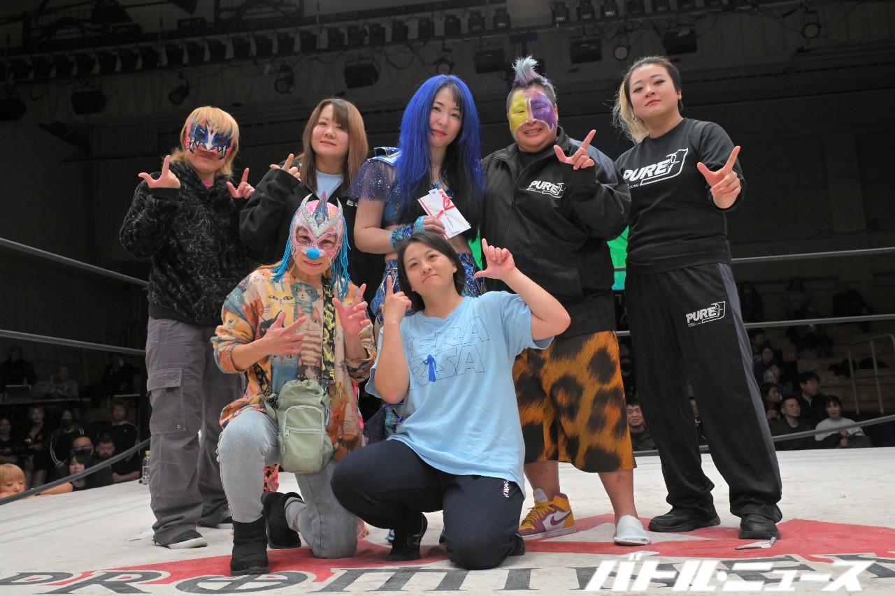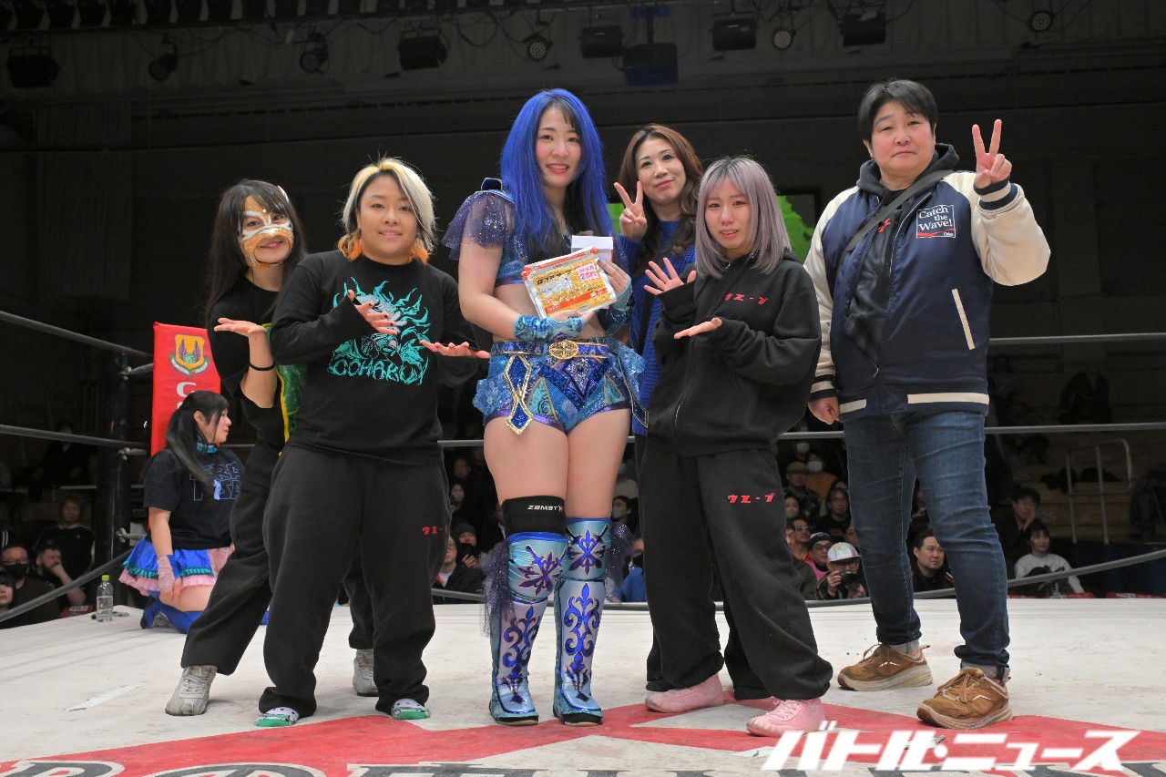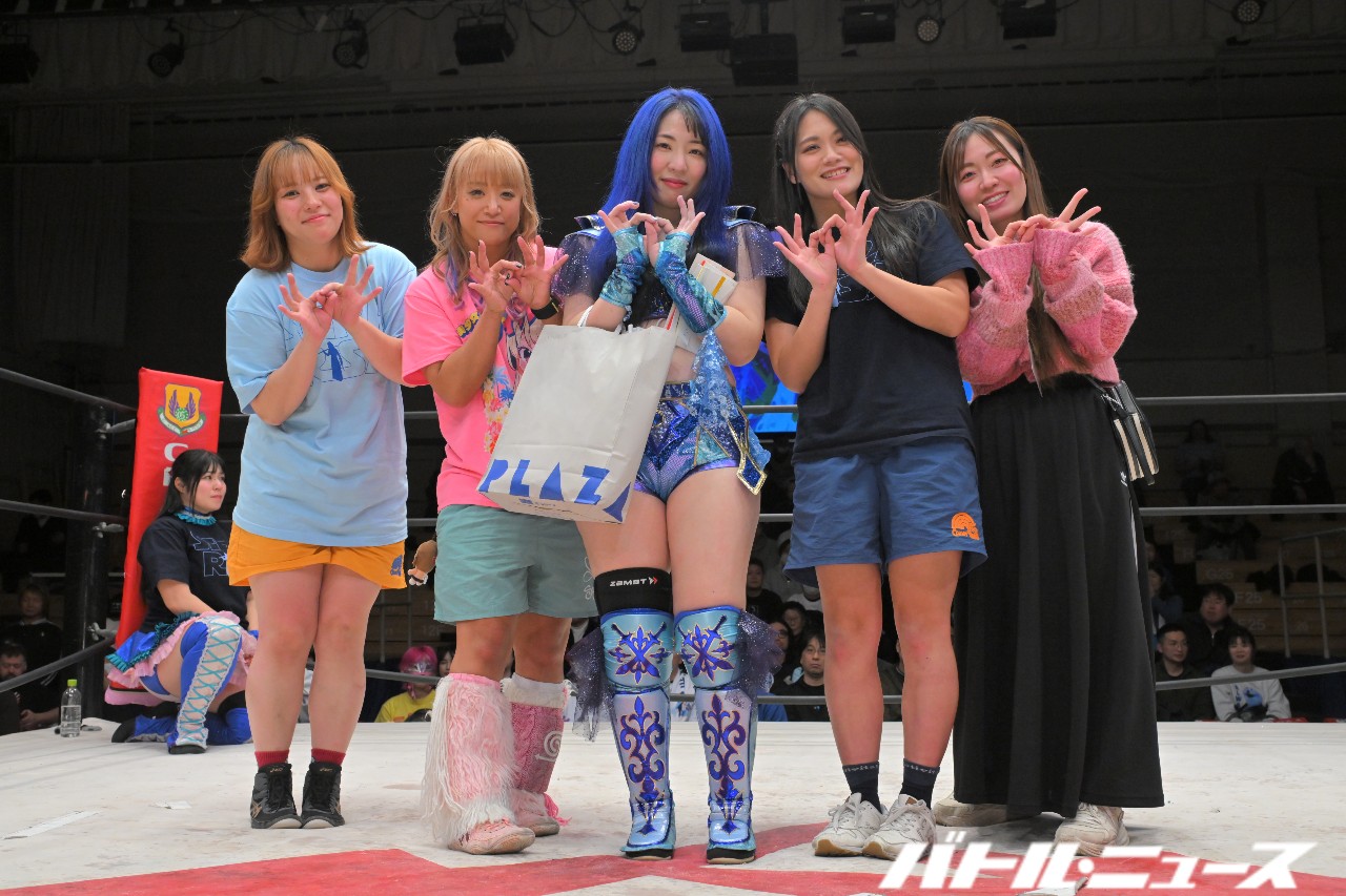 世羅「みんな分かんなくなっちゃってたね(笑)でも、愛すべき仲間たちと言いますか、ホントに同期の2人と、可愛い後輩の美蘭、大空ちえと最後にアジュレボとして迎え撃てたことは嬉しく思います。世羅りさ、プロレスラー史上、タッグ屋史上、最高のラストアジュレボでした!ホントにありがとうございました!」