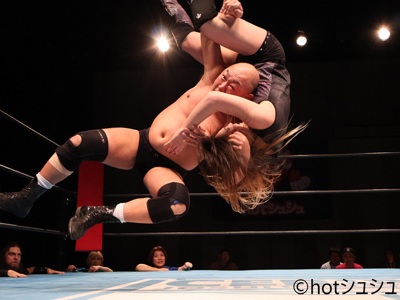 美蘭が逆さ押さえ込みを決め、続けてもえが逆さ押さえ込みもカウント2。