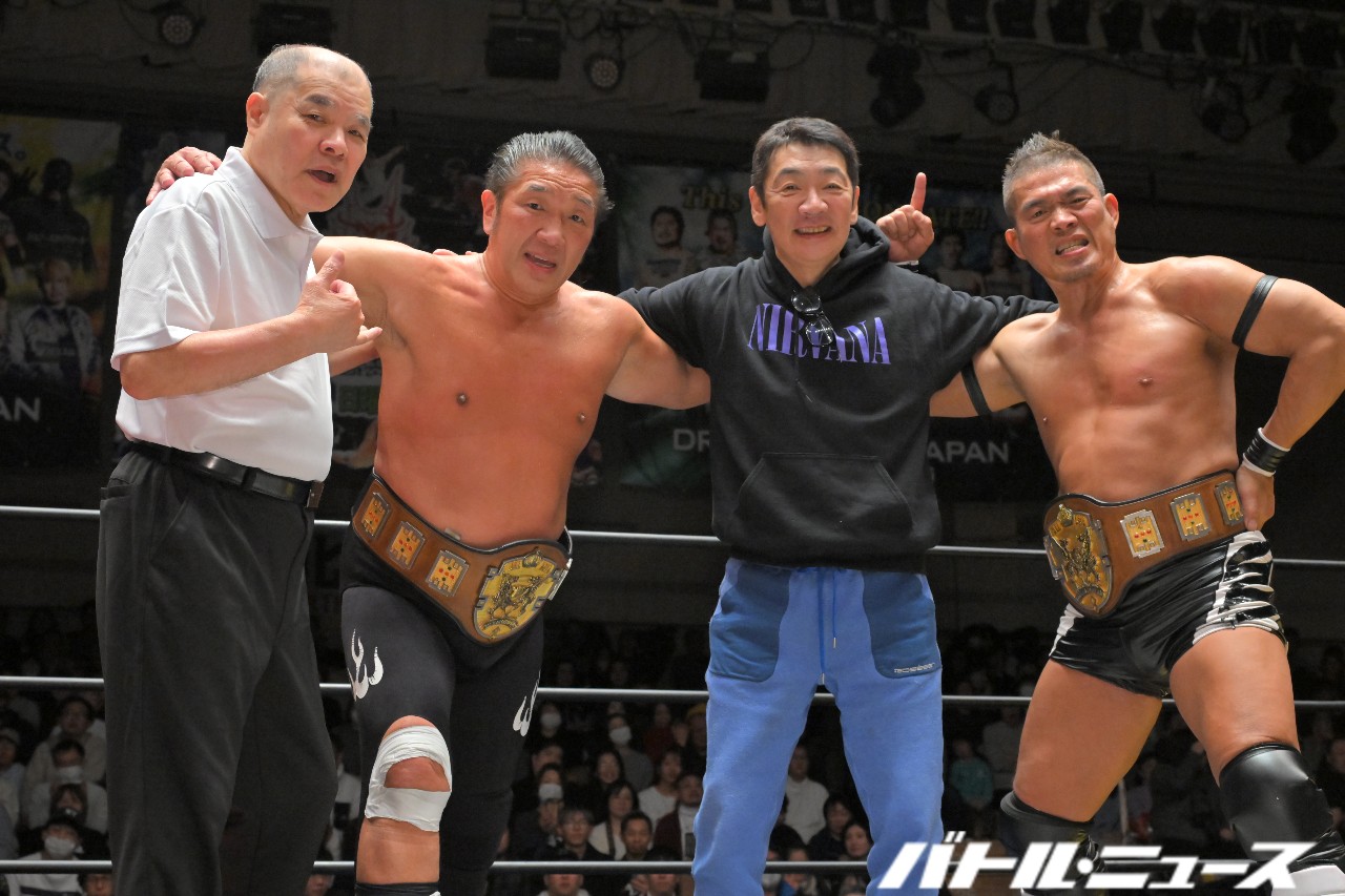 「このベルトが渋い男たちに巻かれたがってたんだ」56歳の大ベテラン2人が若き悪党を退治しアジアタッグ王座戴冠!