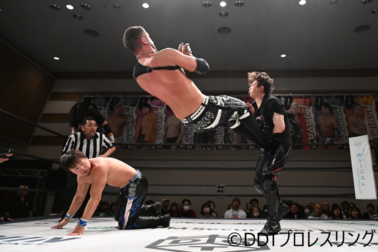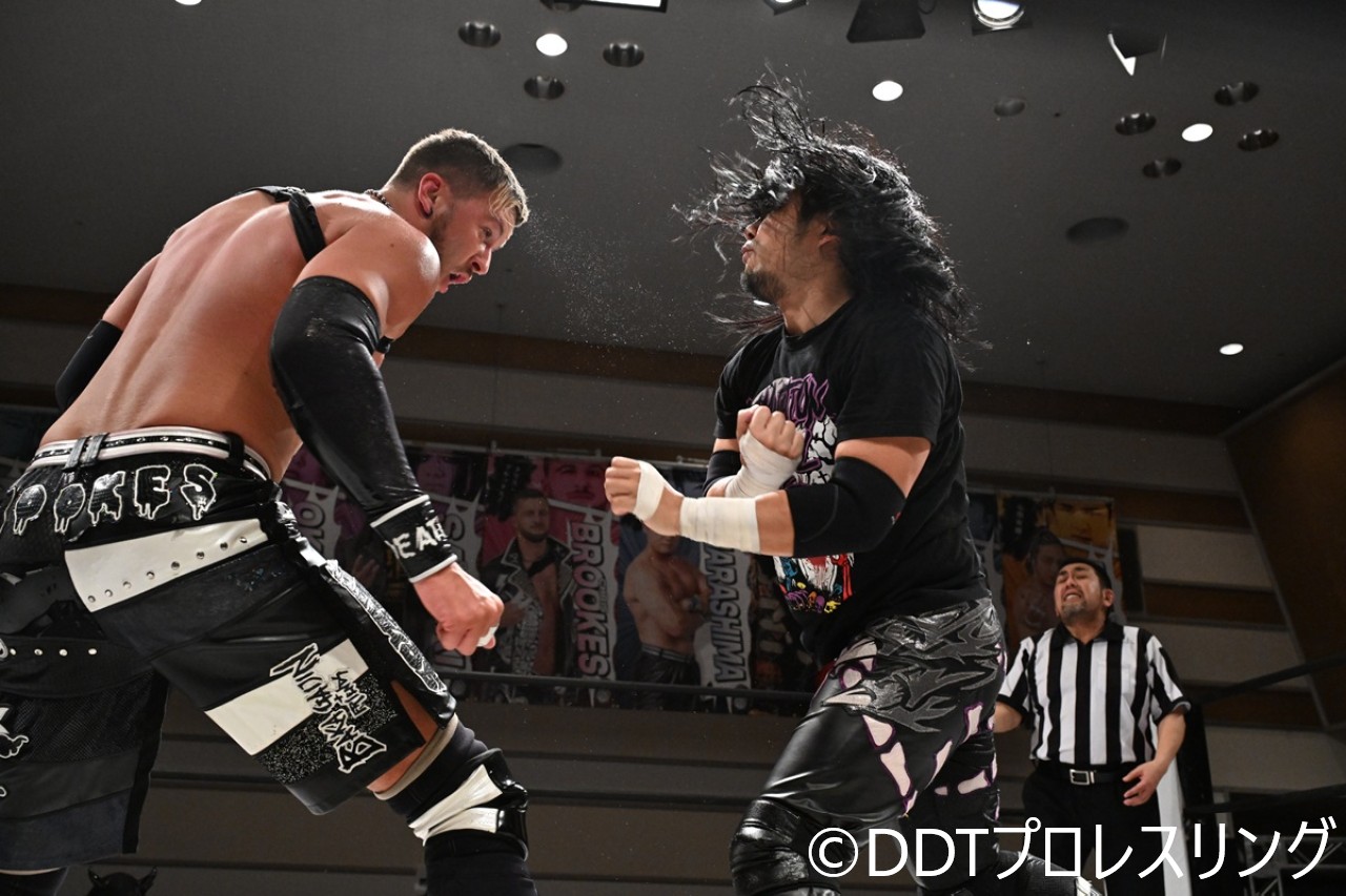 DDTプロレスが1月17日、神奈川・横浜ラジアントホールで『サタディ・チャイナタウン』を開催した。25日の後楽園ホールで行われるKO-D無差別級&DDT UNIVERSAL両選手権試合~変則3WAYマッチ(2冠王者=上野勇希vs挑戦者=佐々木大輔vs挑戦者=クリス・ブルックス)に向け、クリスが佐々木との前哨戦で勝利を挙げ、ダブル戴冠に弾みをつけた。