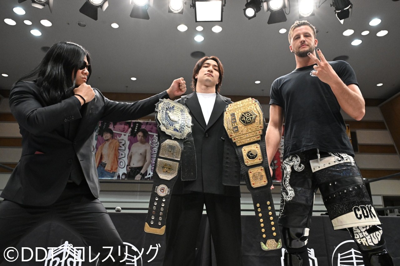 試合を見守った上野は「試合がしたいです。コメント出すことしかできない自分が悔しい。チャンピオンとして情けない。それでもタイトルマッチのリングに立てるなら、チャンピオンとして立たないといけないから。全部逃げずに背負って、後楽園の後も僕が2つのベルトのチャンピオンとして、モテモテのままいっちゃいますよ。佐々木さんにもクリスにもいっぱい思ってもらえて幸せ者です。完璧になって2人のところに戻って、僕が防衛しますんで」と2冠死守を誓った。