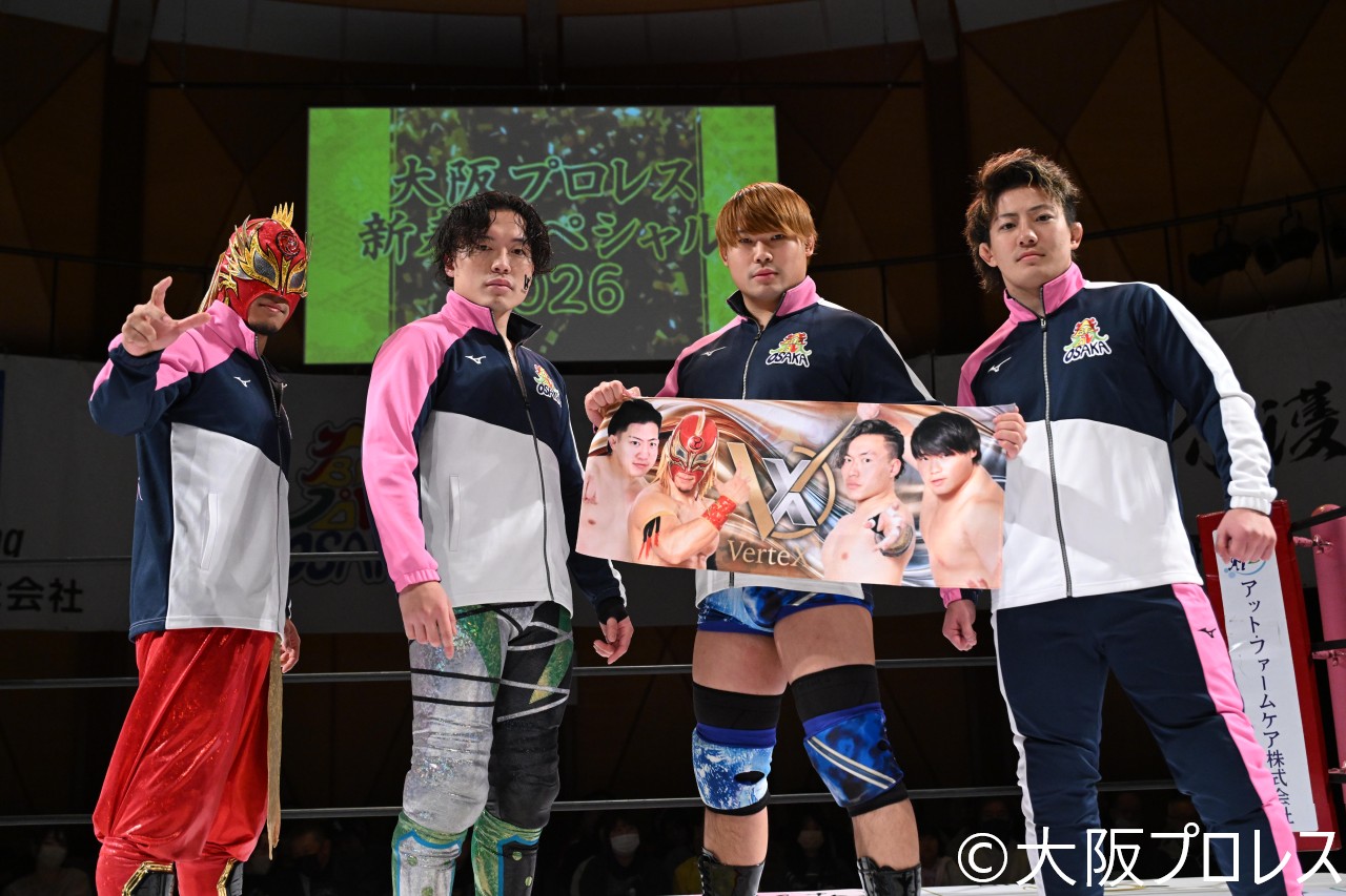 2026年最初の本興行はゼウス社長による熱い新年挨拶の後、オープニングで昨年末のエクスカリバーにて結成した、松房龍哉、佐野蒼嵐、SUZAKU、水野翔の新ユニットが勢ぞろいで登場。マイクを握った松房が高らかにユニット名『VerteX(ヴァルテックス)』を発表し、この四人で頂点目指すことを超満員の観衆に約束した。