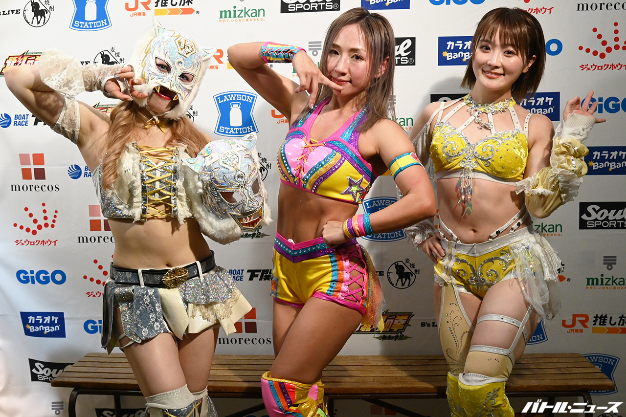 2023年の里村明衣子戦以来となる後楽園ホールのリングで、愛川はスターライト・キッド&なつぽいとともに歴代ワンダー・オブ・スターダム王者トリオを結成。対するは若手の姫ゆりあ&さくらあや&玖麗さやか。