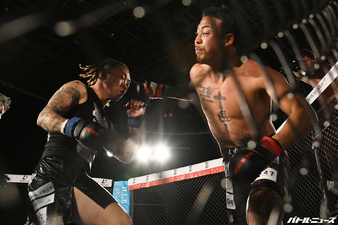 2人は完全決着を求めたが、3月の名古屋大会もあるため1分3Rのキックルールへ。