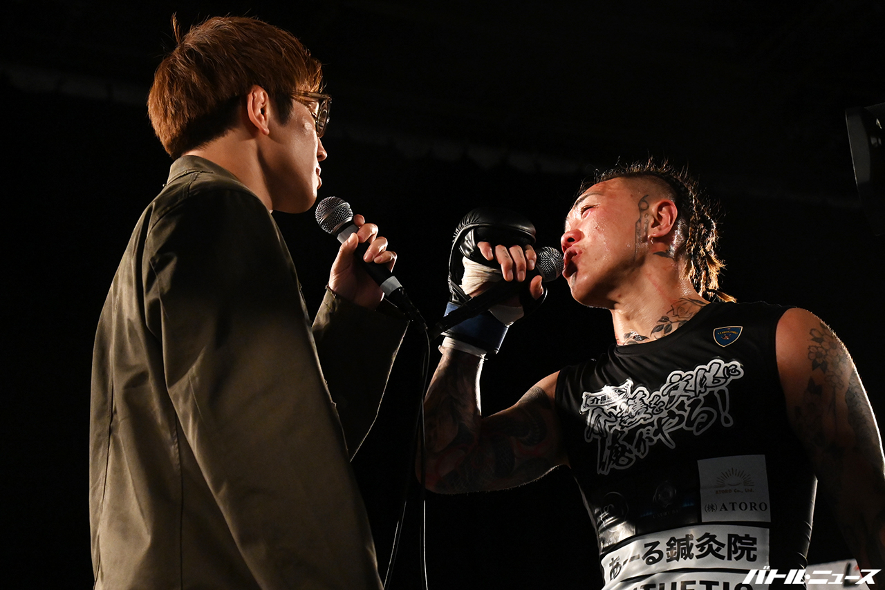 昨年5月のDEEPで【黒服のドリーマー】RYOGAと再戦したsakkkiがグラウンド状態でのヒザ蹴りを放ち反則負けとなり、これを運営サイドの【浪速のトリックスター】白川ダーク陸斗に注意された事で逆ギレし白川に対戦要求。