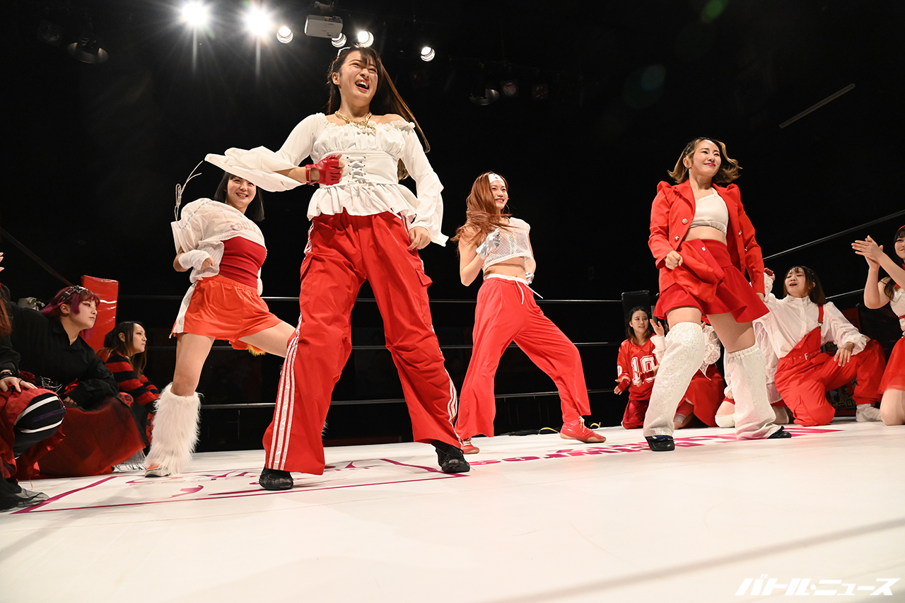 赤と白を基調としたベビーズと、黒と赤を基調としたキラーズがそれぞれダンスを披露し、全員でリングに上がると『Love Riddle』を踊る。間奏ではメインで闘う汐月なぎさ、夏葵、福永莉子、植原ゆきながセンターダンスを行った。