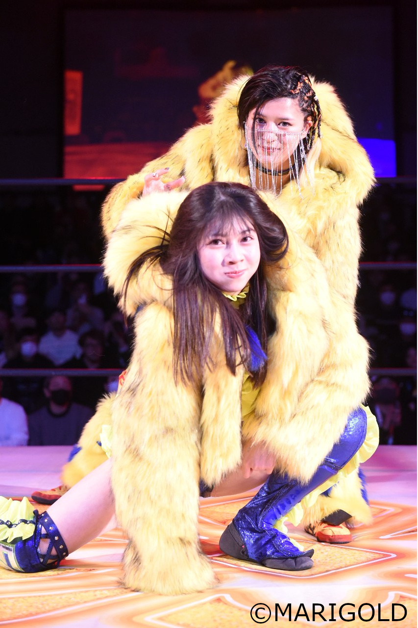 24日、東京都・後楽園ホールにて『MARIGOLD New Year Golden Garden 〜岩谷麻優デビュー15周年記念〜』が開催。山岡聖怜&心希の10代新人タッグがタッグ王座戴冠を逃した。