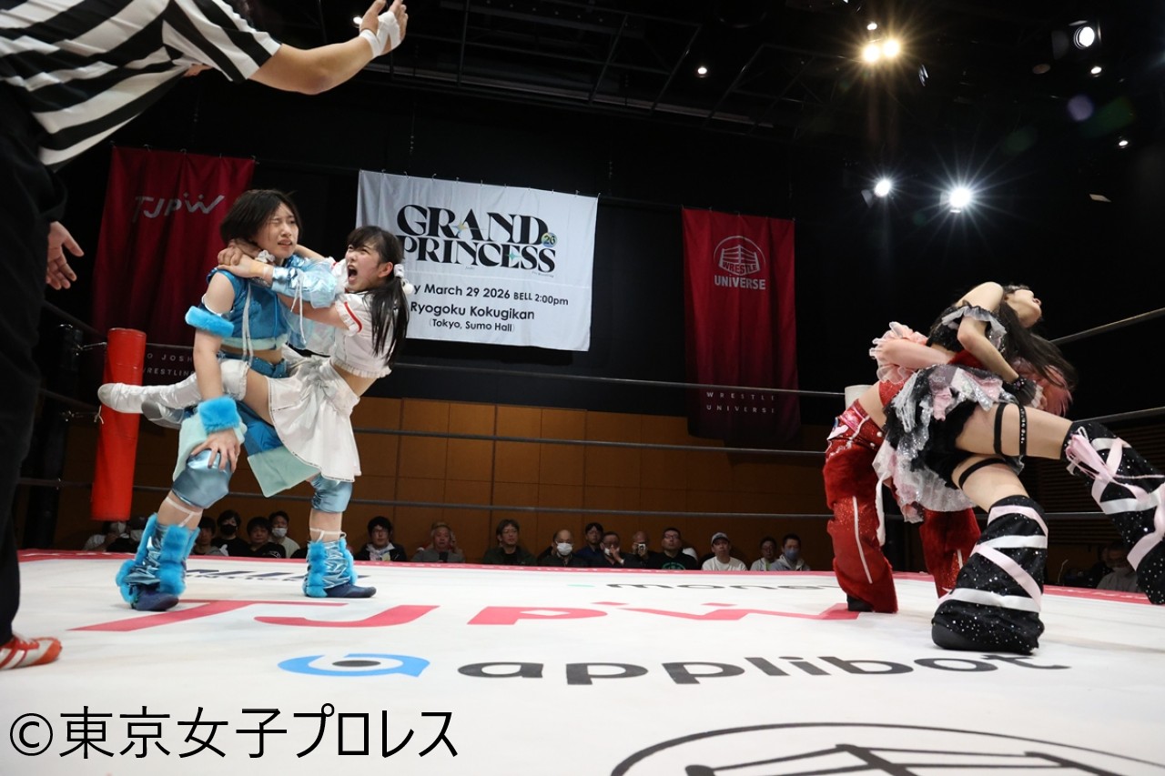 東京女子プロレスが1月25日、東京・両国KFCホールで『第6回“ふたりはプリンセス”Max Heartトーナメント』を開催した。2回戦で瑞希&高見汐珠が愛野ユキ&風城ハルを下し、4強入りを決めた。