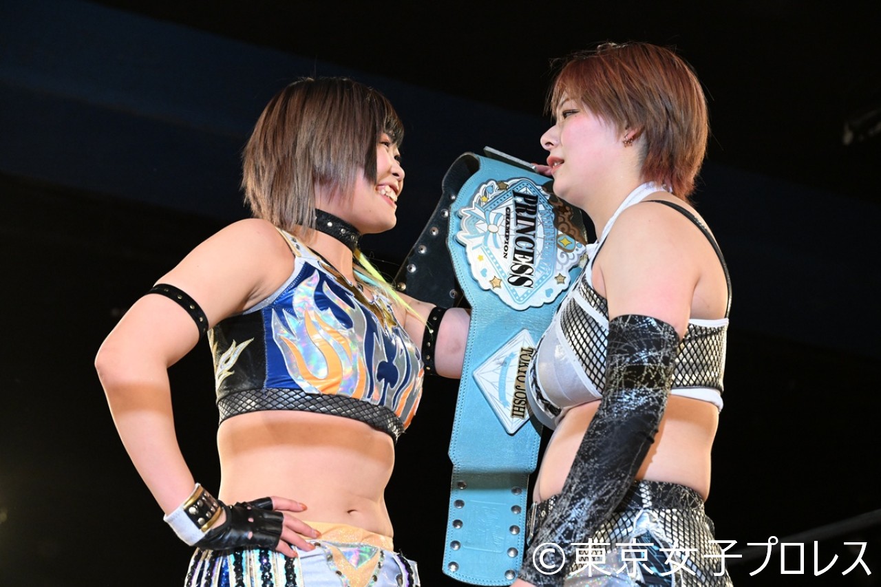 東京女子プロレスが1月31日、東京・新宿FACEで『第6回“ふたりはプリンセス”Max Heartトーナメント』を開催した。2月14日、後楽園ホールでのインターナショナル・プリンセス選手権試合に向け、王者MIRAIと挑戦者・凍雅が最初で最後の前哨戦でバチバチに火花を散らした。