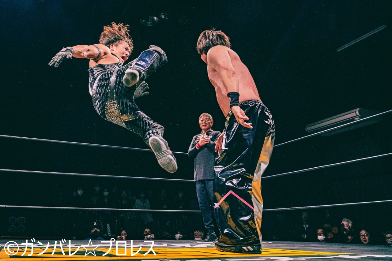 これまで進はGHCジュニア・ヘビー級タッグを始め、オープン・ザ・トライアングルゲート、IJ、IJタッグ、KFCタッグ、同ジュニア・ヘビー級など数々のベルトを巻いてきた本格派。ガンプロには2024年11・17新木場以来の参戦となった進は、かつて「月闘」などでしのぎを削ってきた勝村と強力タッグを結成し、今成&石井と激突。