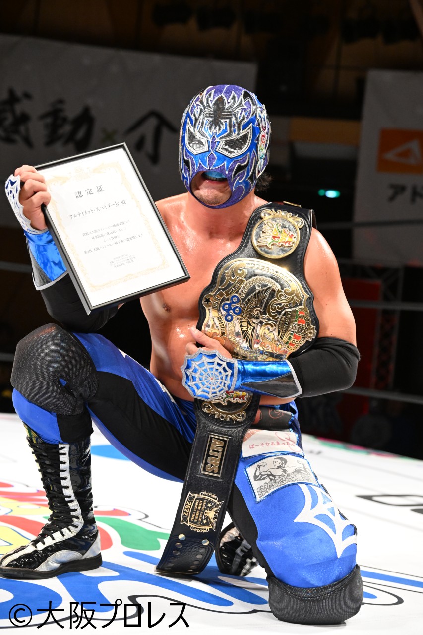 スパイダー「今日もボロボロですが皆さんの声が聞こえて、最後まで諦めず立ち上がることができました。皆さんに応援してもらってやっと獲れたベルトの防衛戦の相手が相方で良かった。タコスパタッグで辛い時期も一緒に乗り越えてきた、そんなパートナーと防衛戦ができて良かったです。次の大阪タッグフェスティバルは再び組んで乗り込みます。優勝目指して頑張ります。」とタッグフェスティバル優勝を高らかに宣言した。