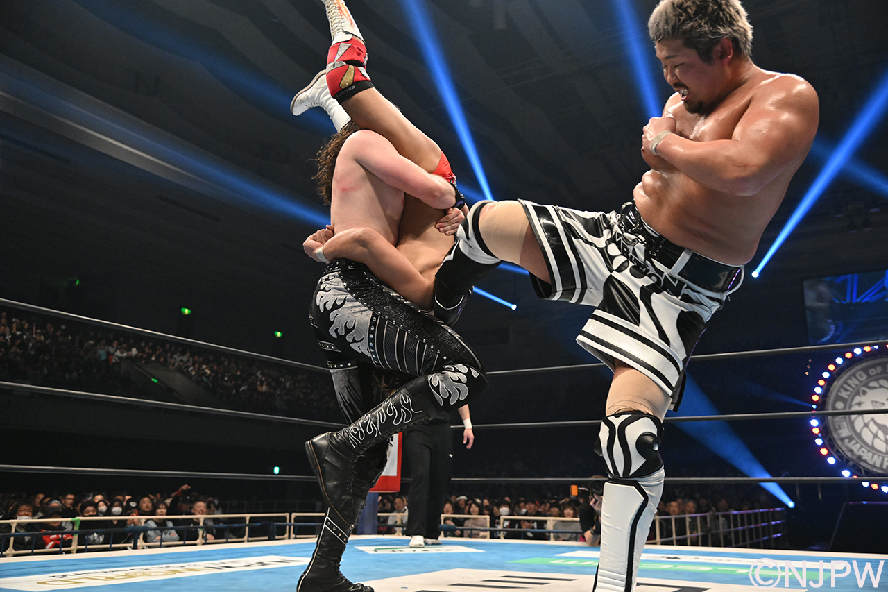 11日、大阪府立体育会館にて新日本プロレス『ミクチャpresents THE NEW BEGINNING in OSAKA』が開催。第7試合では[Knock Out Brother's(K.O.B)]Yuto-Ice&OSKARの持つIWGPタッグ王座に海野翔太&上村優也が挑戦した。