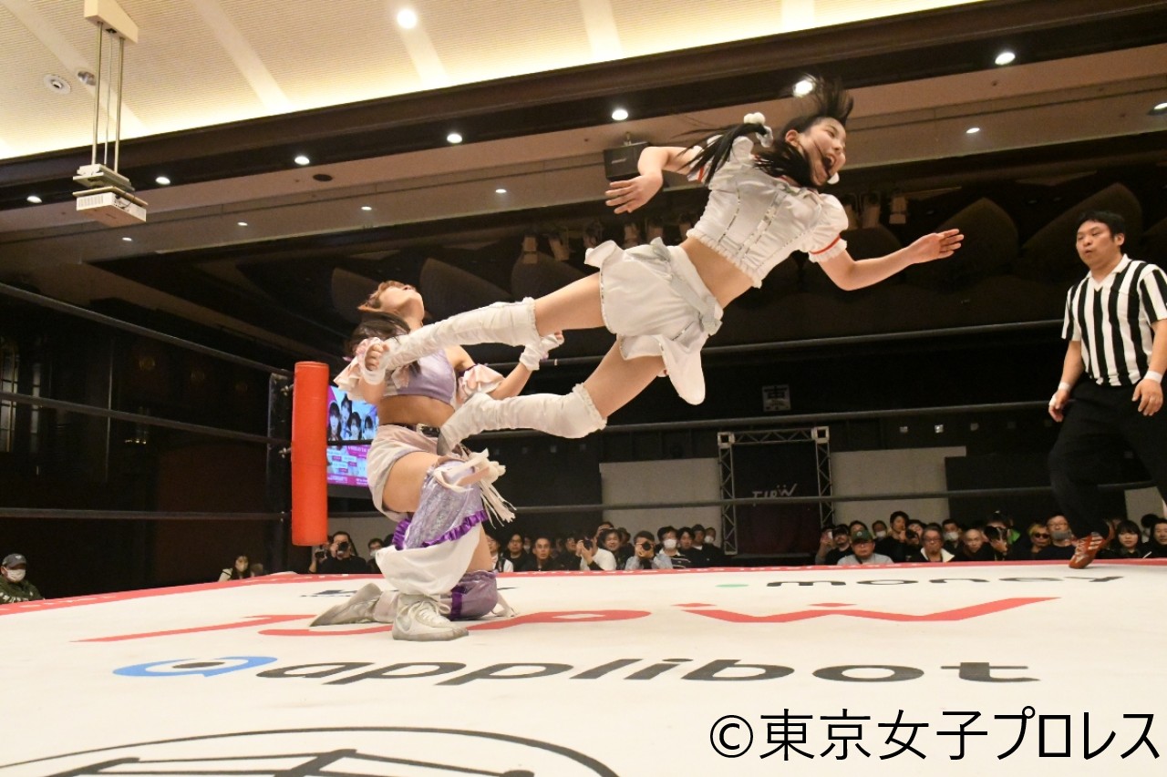 東京女子プロレスが2月11日、新潟・Duo CEREZO(上越市)で『中島翔子新潟凱旋興行~ショウコクエストⅣ 雪国に導かれし者たち』を開催した。『第6回“ふたりはプリンセス”Max Heartトーナメント』決勝戦(14日、後楽園ホール)に向けた前哨戦が行われ、瑞希&高見汐珠組がOber Eats(上福ゆき&上原わかな)組から勝利を収め、優勝に弾みをつけた。