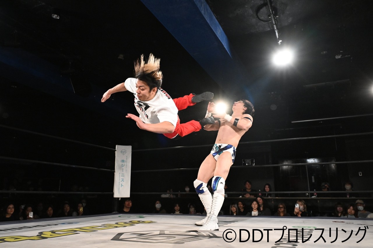 DDTプロレスの人気ユニット・サウナカミーナのプロデュース大会『花より熱波5~世界に一つだけのサウナ~』が2月14日、東京・新宿FACEで開催された。左ヒザの負傷のため、昨年7月から長期欠場していた勝俣瞬馬が『旗揚げ29周年記念大会』(3月22日、後楽園ホール)での復帰を発表。To-yは“プロレス王”鈴木みのるを相手に敗れるも、大奮闘して成長ぶりをアピールした。