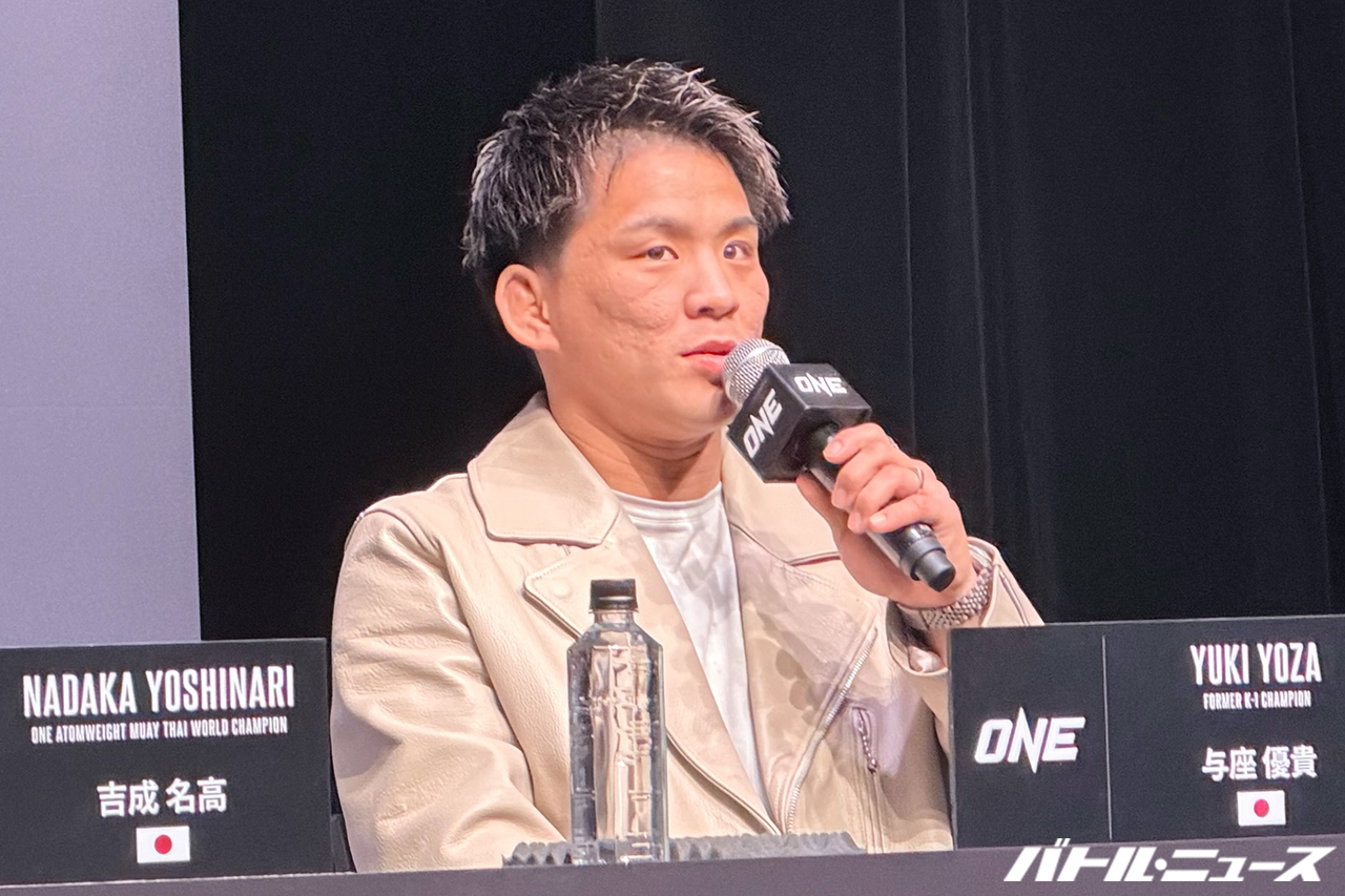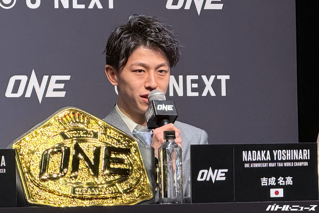 吉成「そうですね、やっぱり自分の試合のスタイルだったりとか、試合展開っていうのは、ほかの選手が真似できない自分唯一のものだと思ってるんで、そういったものを見て、こう自分の試合楽しんでもらえたらなっていうのと、まあ自分はONEのムエタイのチャンピオンで、このベルトをまずしっかりと防衛をし続けて、まあその後こう、まあ挑戦者がいなくなるような位置まで行けたら、また新しいチャレンジもしていけたらなと思ってるんで、あの自分の試合だったり、こう注目してもらえたら嬉しいなと思います」
