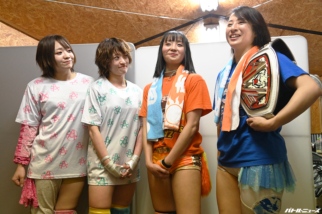 「負けると思って」と言い訳する梨央に、茉莉がブチギレて顔面を殴り髪を掴んで引き起こしてエルボーを打ち込んでいくが、さくらとかなが「喧嘩はだめ!」とそれぞれにドロップキックを突き刺し仲裁。さらにさくらが茉莉に619からフォールも2。