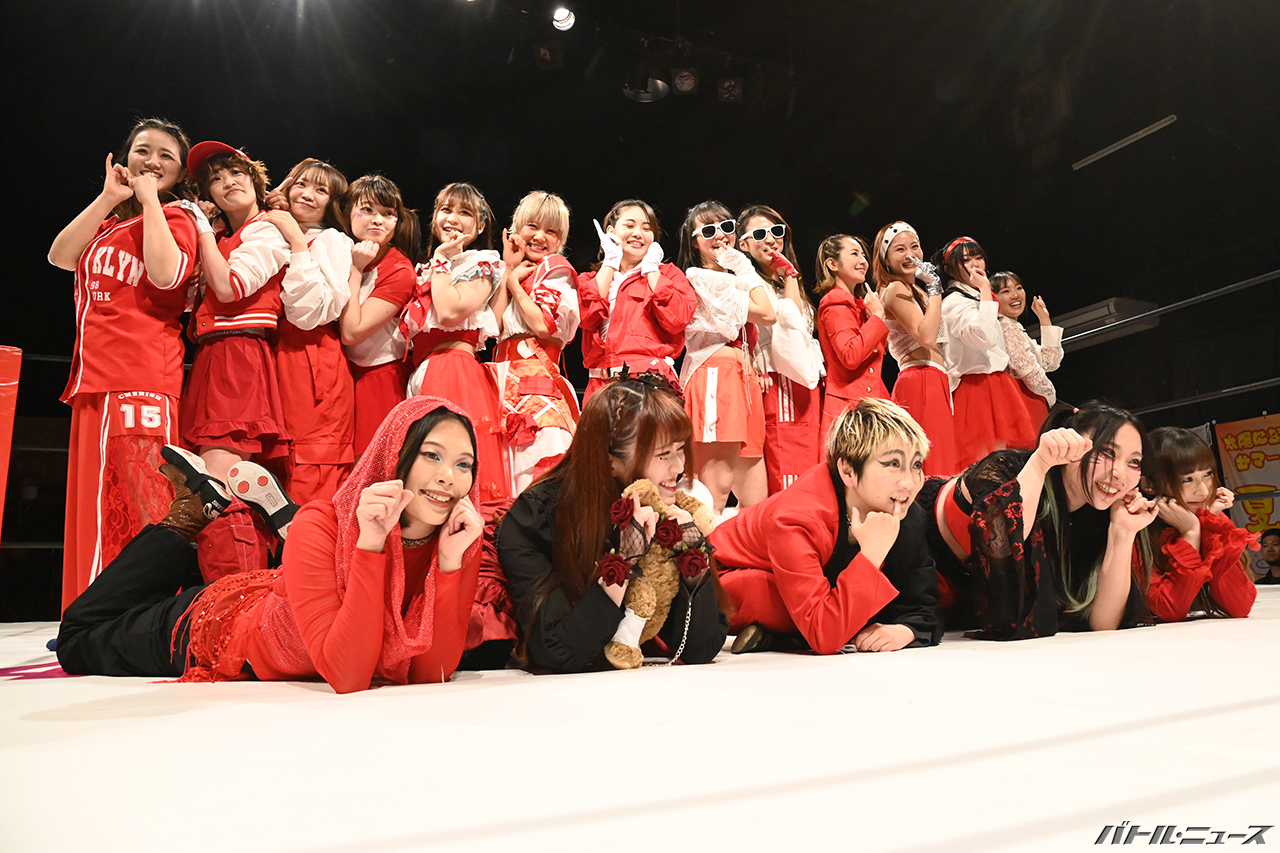 赤と白を基調としたベビーズと、黒と赤を基調としたキラーズがそれぞれダンスを披露し、全員でリングに上がると『Love Riddle』を踊る。間奏ではメインで闘う才原茉莉乃、植原ゆきな、MARU、みあ朝子でセンターダンスを踊るが、途中でゆきなが朝子をヒップアタックでふっ飛ばしてセンターに躍り出た。