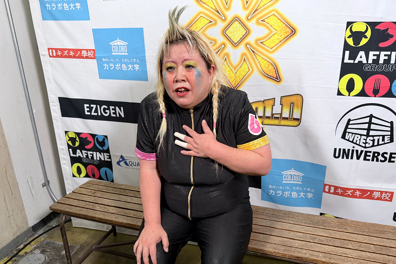 敗北したCHIAKIが青野に掴みかかりエルボーの打ち合いへ。野崎が仲裁に入り、「CHIAKI、わかるよ、その気持ちわかるけど、お前、負けたんだよな?わかってる?潔くさ、切ろうよ」と髪を掴んで声をかけるが、CHIAKIはエルボー。フラフラと立ち上がるが、決心したようにリング中央であぐらをかく。