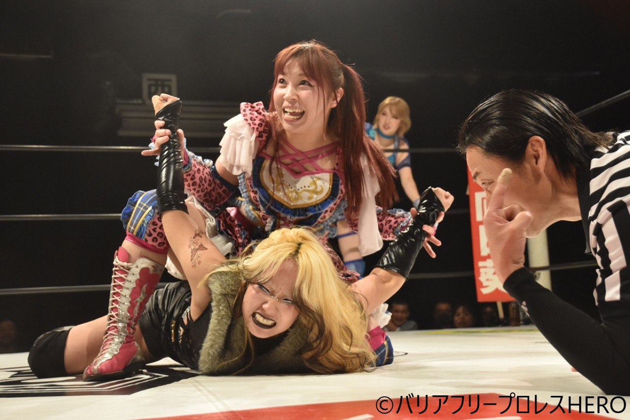 HEROマットでは真琴とMariaが久々のタッグで、笹村&ミサと対戦。真琴組が笹村にダブルでビッグブーツ。ミサがMariaにセントーンを見舞えば、Mariaはミサに変型卍もカット。真琴がミサにカカト落としを決めれば、ミサはマウントを取ってエルボー連打。真琴が笹村にダブルアーム・スープレックス、Mariaはドロップキック。笹村がMariaにダイビング・フットスタンプもカット。ここで15分タイムアップのドローに。