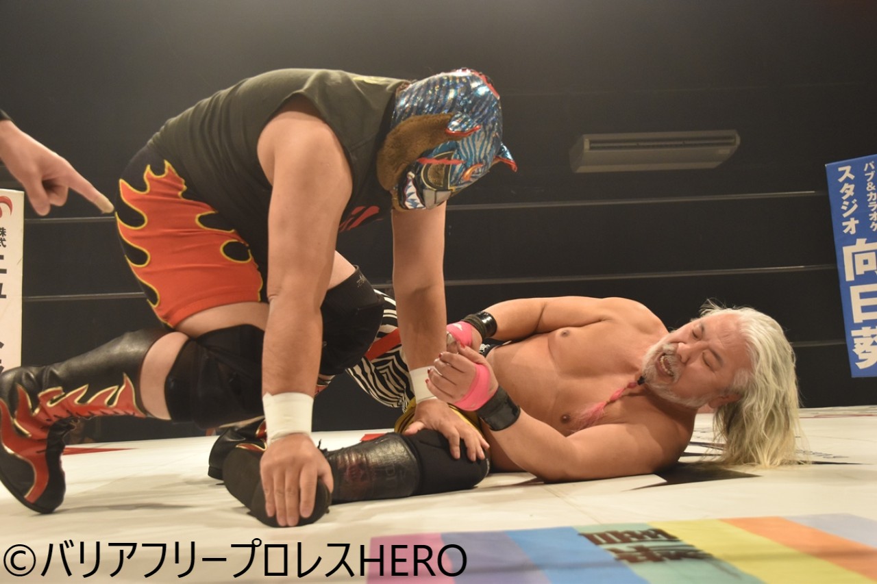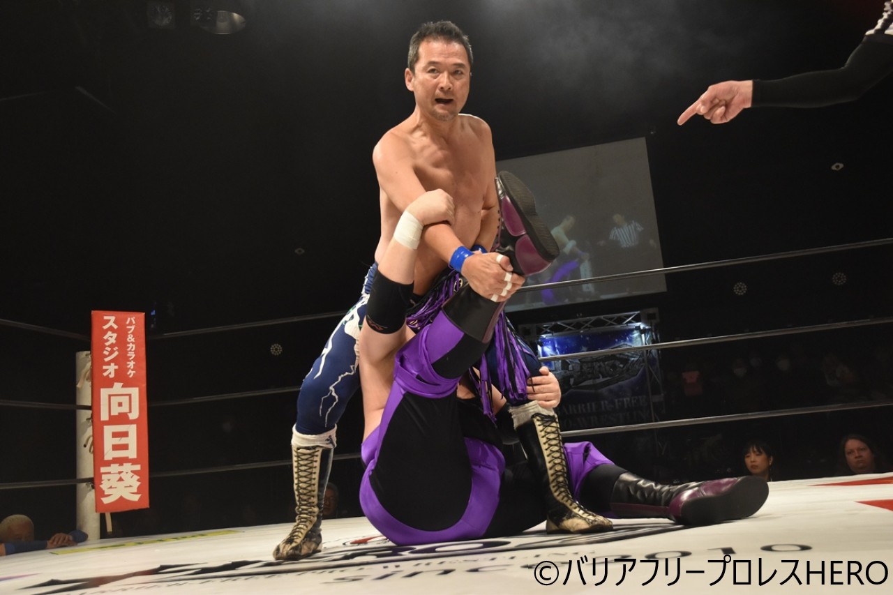 「障害があってもなくても楽しめるプロレス団体」をコンセプトとするバリアフリープロレスHEROが2月21日、東京・新木場1stRINGで『HERO48~旗揚げ16周年記念大会』を開催した。初代WBC(ワールド・バリアフリー・チャンピオンシップ)王者決定トーナメントが開幕し、ワイルド・ベアーが同じ系譜をもつ大先輩のリッキー・フジに辛勝し1回戦を突破した。