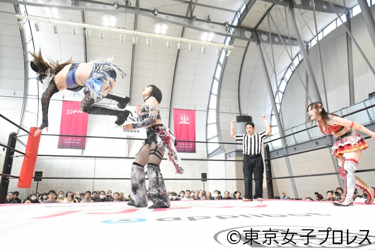 オーバーイーツは2・14後楽園でタッグ王者として、『第6回“ふたりはプリンセス”Max Heartトーナメント』を制覇。試合後、3・29両国での次期挑戦者について、上福は「私たちよりもフォロワーとか多くてバズってて、ラグジュアリーでかっこよくってセクシーで、全部上回ってる人に挑戦してほしい」と要望を出していた。