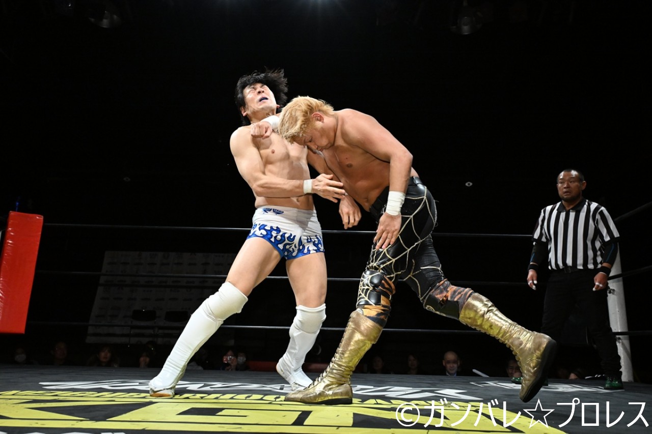 和田はこれが3度目の同王座への挑戦で、プロレスルールでの戦いにも順応し満を持してのチャレンジとなった。和田はアキレス腱固め、アンクルホールドなどで徹底した足関節攻めで、2024年12月に右アキレス腱断裂の大ケガを負った渡瀬は悶絶。それでも渡瀬はダイビング・フットスタンプ、ドロップキックで反撃も、和田はロコモーション式ノーザンライト・スープレックス。渡瀬がエルボーを繰り出せば、和田はミドルキックで対抗し、エルボーの打ち合いに。渡瀬が投げ捨てジャーマンを見舞えば、和田は投げ捨てドラゴン・スープレックスで返した。和田はアンクルホールドで締め上げ、バックドロップ、アサルトポイントとつなぐもカウントは2。渡瀬は垂直落下式ブレーンバスターをカウント1で返されると、ヒジのサポーターを外してベアエルボー。2発目をかわした和田は腕十字を狙うも、渡瀬は抱え上げてマットに叩きつけた。渡瀬がベアエルボーもカウントは2。ならばとヴェネチアンを決めて、粘る和田にトドメを刺した。