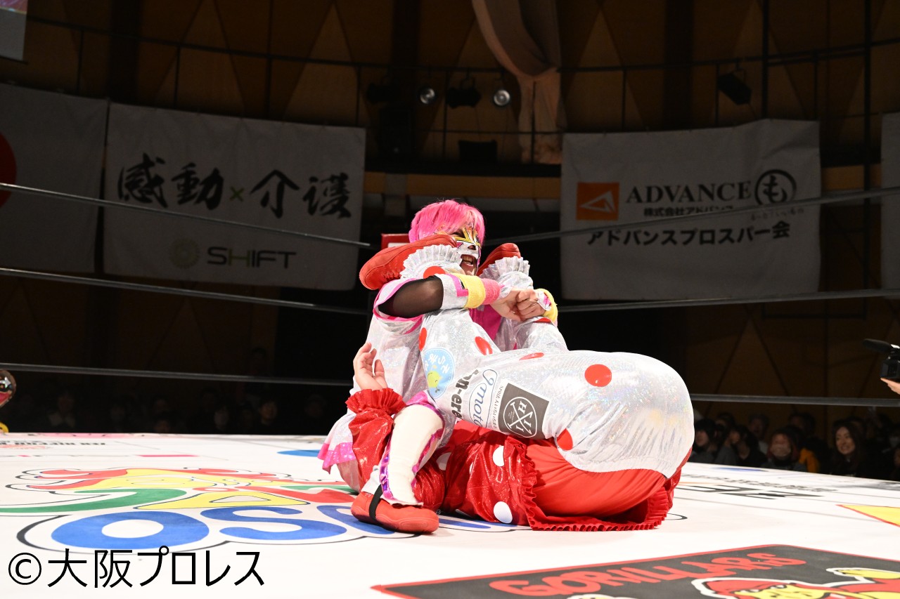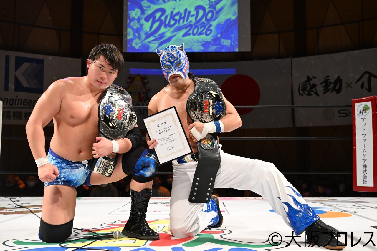 タイガースマスク&佐野蒼嵐が大阪プロレスタッグ初防衛に成功!松山勘十郎がタコヤキーダーに勝利し大阪名物世界一を戴冠!
