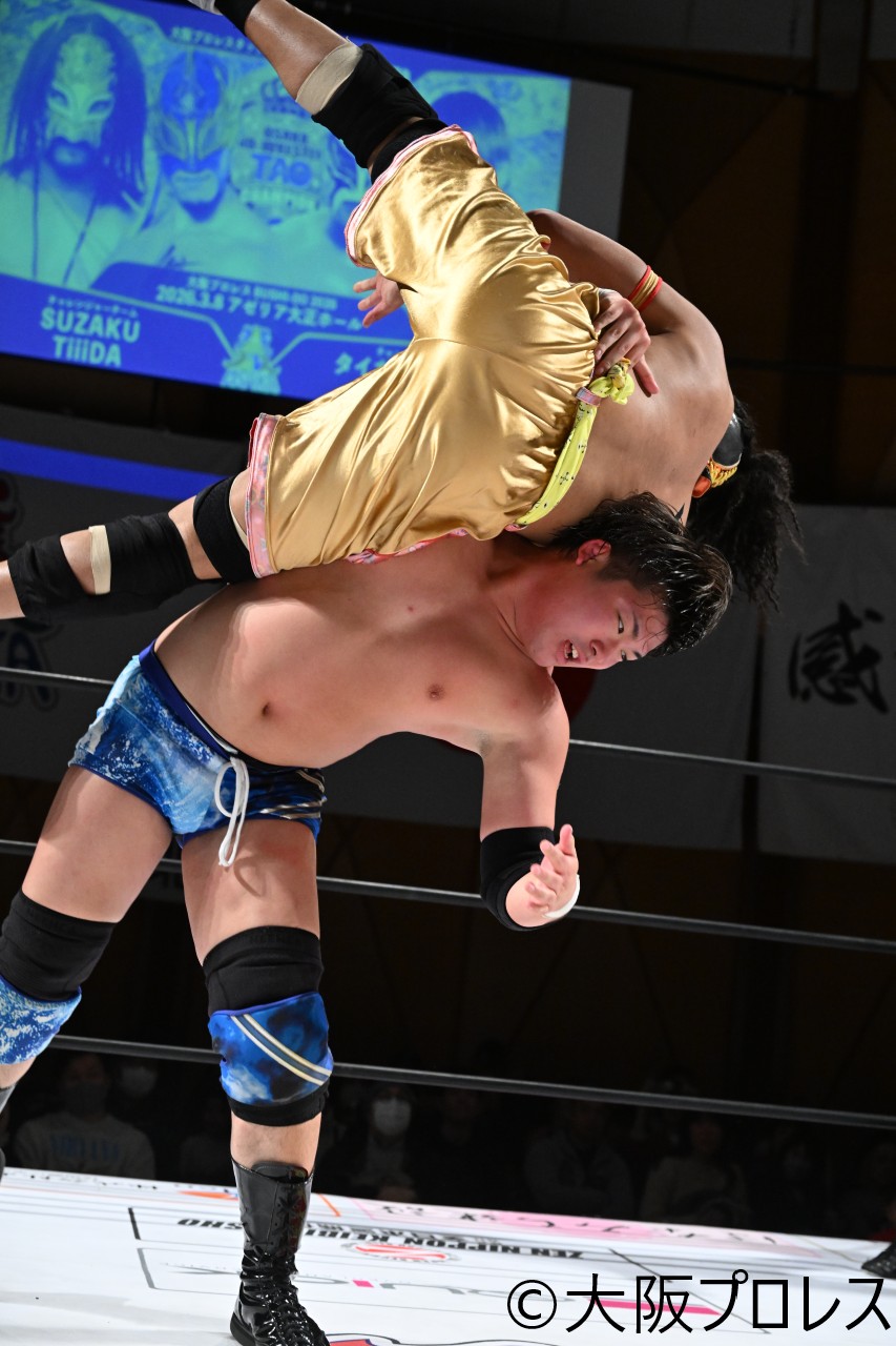 【試合詳細】3・8 大阪プロレスアゼリア大正ホール大会 【大阪プロレスタッグ】タイガースマスク&佐野蒼嵐 vs SUZAKU&TiiiDA 【大阪名物世界一】タコヤキーダー vs 松山勘十郎 松房龍哉&アルティメット・スパイダーJr&三原一晃 vs TORU&大瀬良泰貴&浅川紫悠
