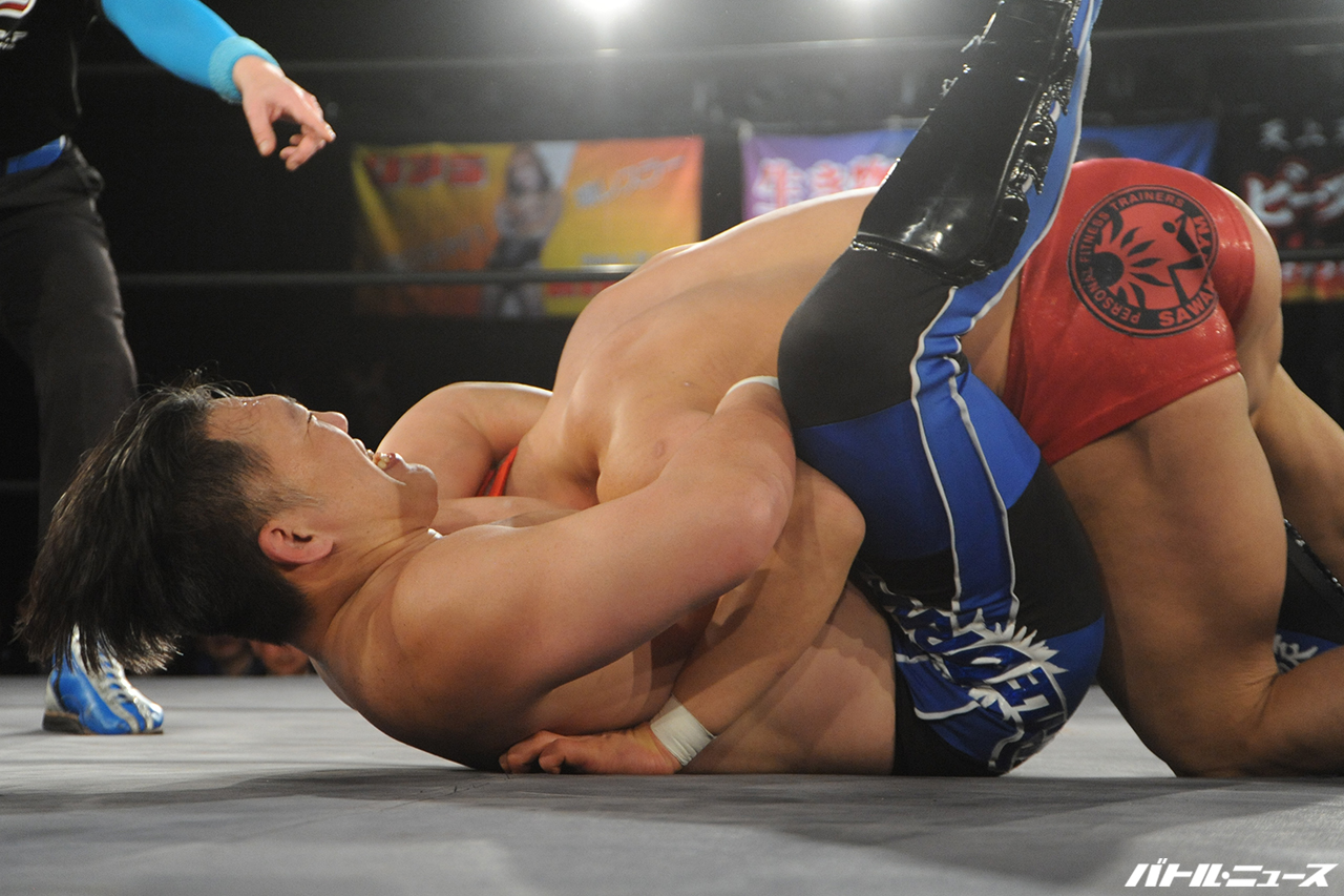 立ち上がって両者向かい合うとエルボーの打撃戦となり、打ち勝った光留が背中へのサッカーボールキックからフォール。返した八須をキムラロックで捕らえて絞り上げるが、八須はそのまま担ぎ上げるとスクワット式バックフリップで叩きつけて逃れる荒業へ。