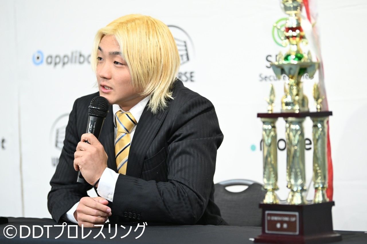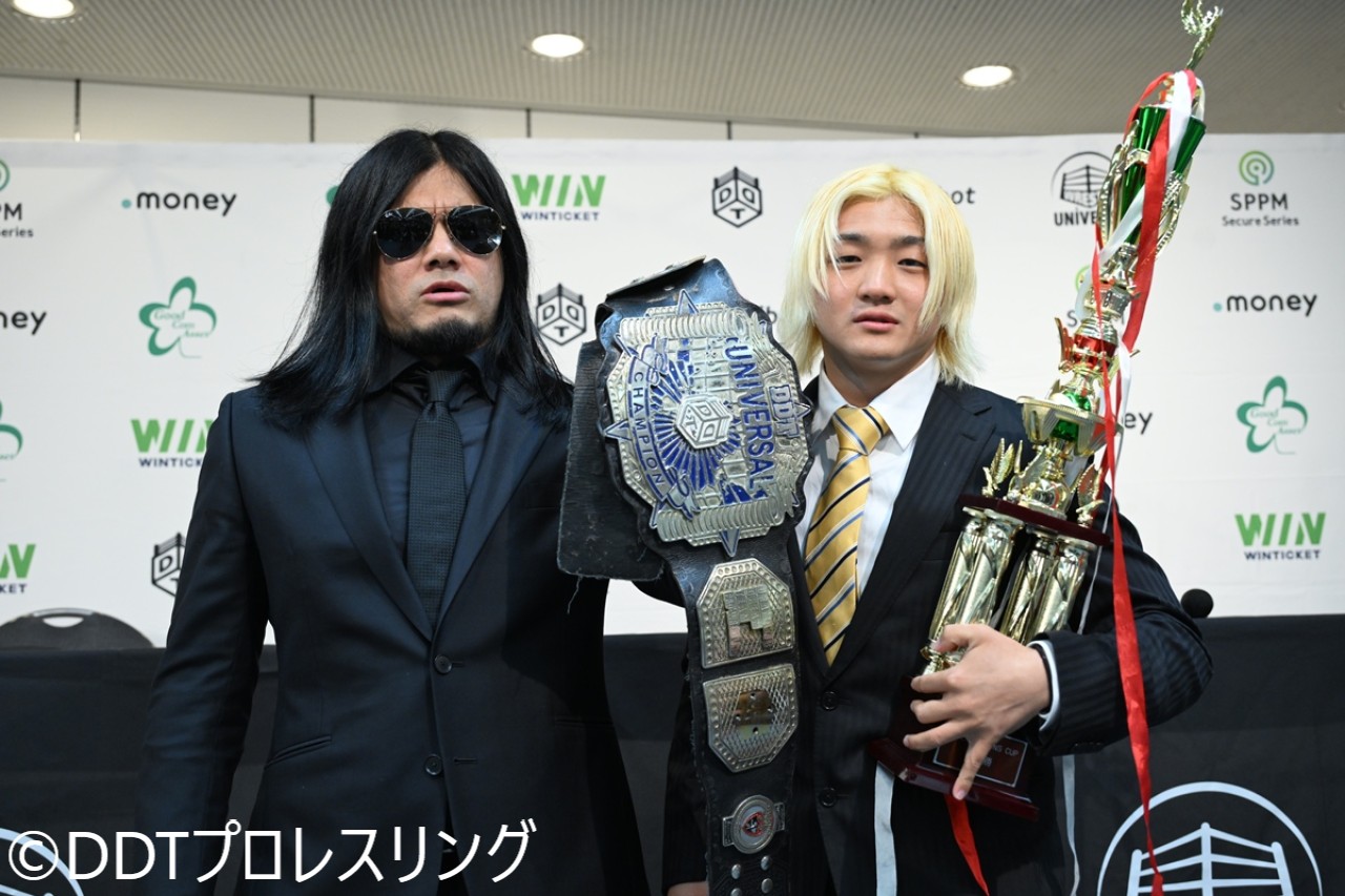 DDTプロレスが3月20日、都内で『Judgement2026~旗揚げ29周年記念大会5時間スペシャル~』(3月22日、東京・後楽園ホール)に向け公開記者会見を開いた。DDT UNIVERSAL王者の佐々木大輔が挑戦者の須見和馬を一刀両断に伏した。