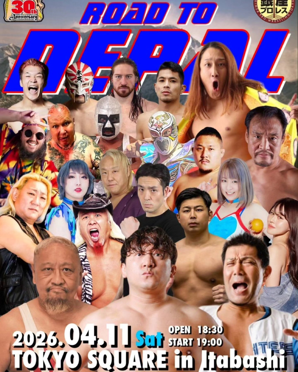 4月11日、東京・TOKYO SQUARE in Itabashi で「Road to Nepal」を開催し、RIZIN、UFCなどで活躍のスパイク・カーライル(Naughty House) 、アラン“ヒロ”ヤマニハ(ボンサイ柔術)、寒天マン(寒天ファイトスピリット)、ゴングマンの4選手が、プロレスの試合に初挑戦することが発表された。元プロレスリング・ノアのリッキー・マルビンの緊急参戦も決まった。