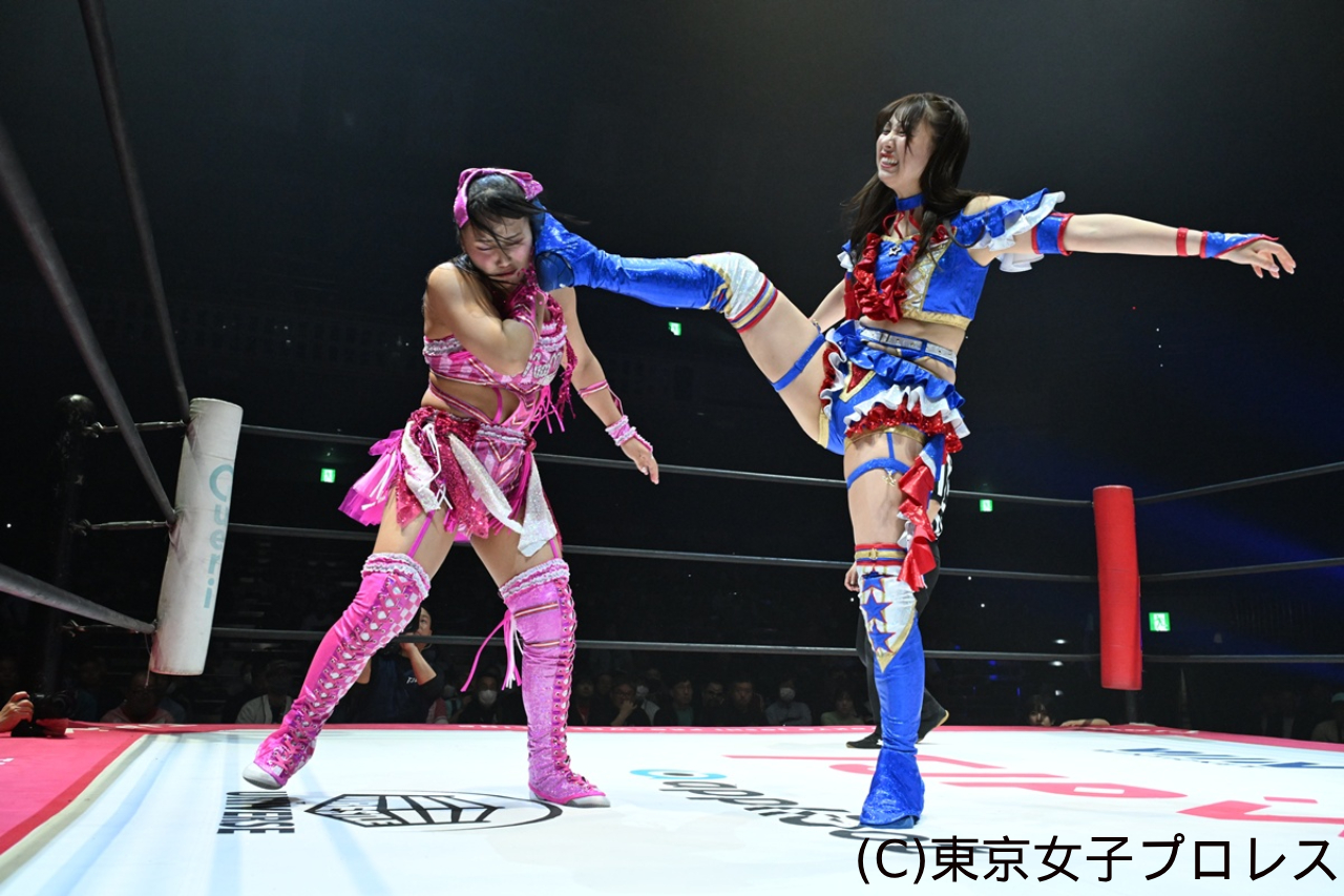 一方、王座から陥落した渡辺は「荒井優希との初のシングルマッチ、プリンセス・オブ・プリンセスの試合ができて、この両国で初シングルができて楽しかったです。悔しいんですけど、荒井はやっぱりすごいなって思う反面、荒井好きだなって思う反面、嫌いじゃないし好きなのに嫌いになっちゃったらイヤだって不安になります。何ですかね、この感情は。ここから荒井優希とまだまだ一生高め合いができると、荒井優希がリング上で言ってくれたので。最初の頃は荒井がいつまでいるか分からない状態で、デビュー戦、隣から始まったなか…一生やり合えるって、ここまで来てこうやってやり合えるって本当に幸せなことだなって思います。だから、ライバル、シングル1戦目は私が敗れたけど、次はもっと強くなって。もっともっと、這いつくばってでも強くなってみせます。ここからもっと強くなっていきます」と悔し涙を流しながらも、巻き返しを誓った。