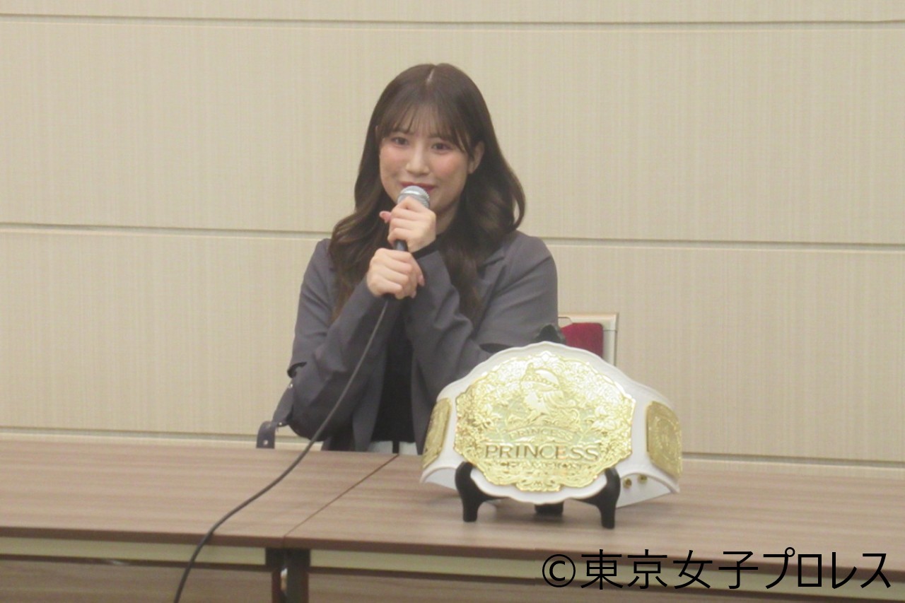 東京女子プロレスが3月30日、都内で記者会見を開催した。前日に両国国技館で渡辺未詩を撃破し、プリンセス・オブ・プリンセス王座初戴冠を果たした荒井優希が一夜明けた思いを吐露した。