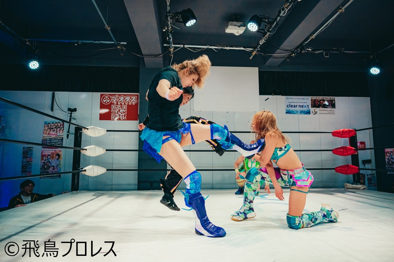 飛鳥プロレスが3月29日、神奈川・ポスト・ディ・アミスタッド(川崎市)大会を開催した。『Angelic☆Cures(エンジェリック☆キュアーズ=以下AC)』のしのせ愛梨紗&柳川澄樺が『まこみおバリューセット』の紫雷美央&松澤さんにまさかの敗退を喫し、次大会(5・4アミスタ)で両軍によるシングル3番勝負の『敗者ユニット解散マッチ』に臨むことになった。