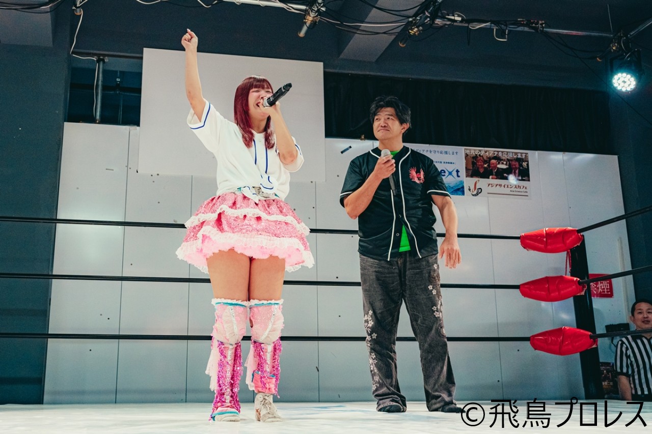 最後は勝者の松澤さんの音頭で「ちあふる! ミラクル! 飛鳥プロレス!」で締めくくられ、エースの愛梨紗にとっては、なんとも納得いかない幕引きとなった。