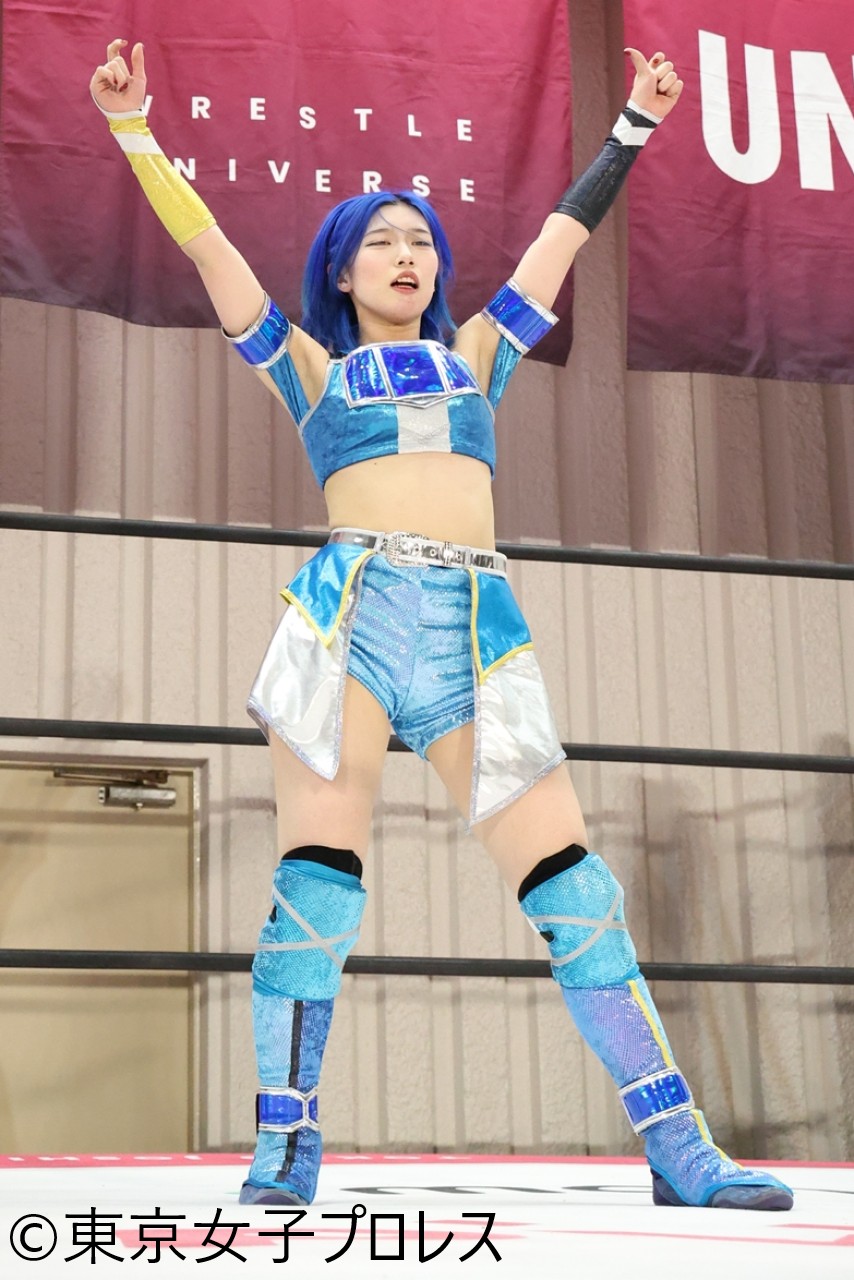 同王座を巡っては4月16日(日本時間17日)、米ネバダ州ラスベガス大会で王者・鈴芽が挑戦者ハットリ桜を迎え撃つ。その勝者にこの日の挑戦者決定戦を勝ち抜いた選手が挑むことになった。