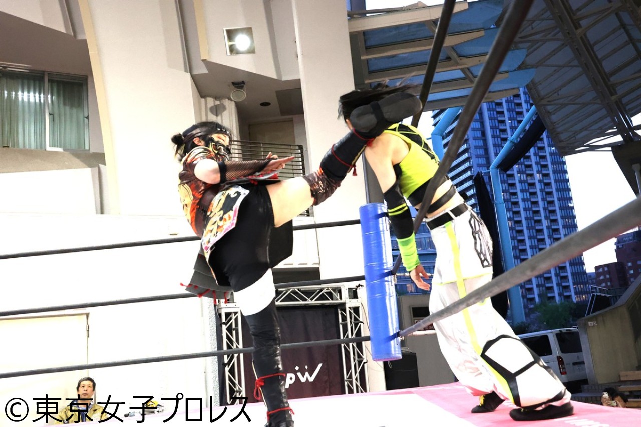 東京女子プロレスが4月8日、東京・上野恩賜公園野外ステージで『ぽかぽか春プロレス in 上野』を開催した。『インターナショナル・プリンセス王座次々期挑戦者決定5WAYマッチ』は3月に高校を卒業したばかりの風城ハルが制して、5月4日の後楽園ホール大会での挑戦権を得た。