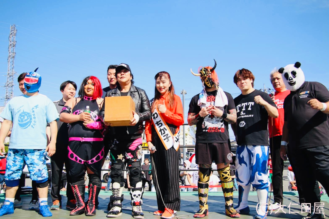 JA山梨みらいの直売所前に設けられたリングで、プロレス3試合とキッズダンスのパフォーマンスが行われ、メインイベントは電流爆破マッチが行われた。