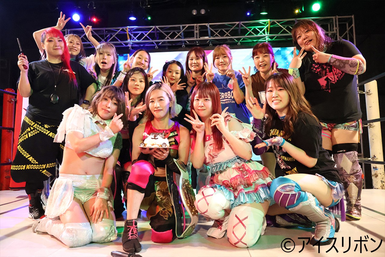 試合後、マイクを手にした優華は「先週に続き快勝した優華でーす!あー楽しかった。おい、きらり、お前、負けただろ、今日。いつ限界突破すんだよ。私の横で限界突破しろよ。明日のSKIPシティ大会では絆トーナメントがあります。もちろん私ときらりが優勝するので、見にきてください。(※きらりが上がってくるが)どうしたの?何しにきたの?(と冷たい反応)。言いたいことなければ締めまーす。」と語ると、トトロがリングイン。マイクを奪い、「明日の1回戦が実質、決勝だと思っている。あなたたちは勢いある。(※「勢いしかない!」ときっぱり返す優華)そう、勢いしかない。私にはパワーがある。このパワーでねじ伏せて、私が優勝する。」とアピールも軽くいなした優華が海乃に「誕生日なのに締められなくて残念でしたね。」とし、ムッとした海乃がさっさと退場。優華が「プロレスでハッピー!アイスリボーン!」で締めるも、楓歩がケーキと海乃の腕を引っ張ってリングイン。優華から海乃にケーキが渡され、全員で翌日4月12日が31歳の誕生日の海乃を祝福。控室に戻ろうとしたところをケーキを持った楓歩とバックステージでかち合ってしまった海乃は「この世で一番恥ずかしいサプライズでした。めちゃくちゃ腹立って帰ったら、目の前にケーキ持って立っている…。正直、鎖骨もプレートが残っている状態ですが年内には取る予定で、完成体になります、やっと。なので今後ともよろしくお願いします。明日は絆トーナメントも優勝して、来週のFantastも私が防衛して、いろいろもっともっと楽しいことをしていこうと思います。」と語り、海乃が「プロレスでハッピー!アイスリボーン!」で大会を締めた。