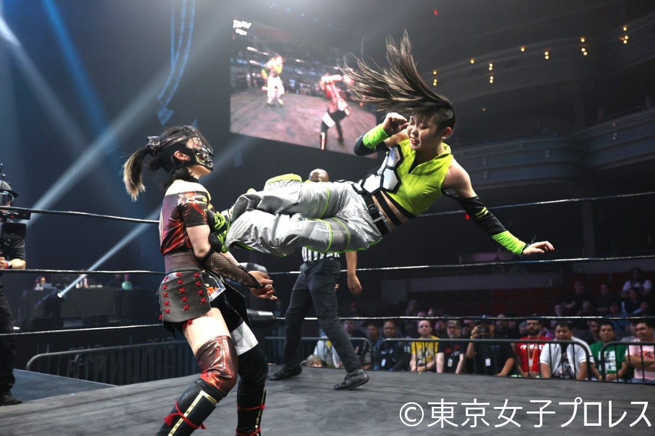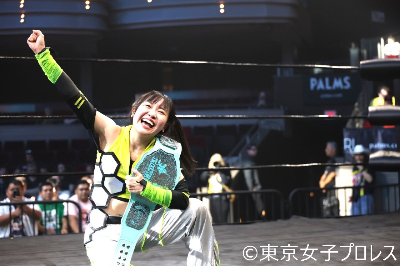 東京女子プロレスが4月16日(日本時間17日)、米ネバダ州パームス・カジノ・リゾート内パールシアターで『TJPW LIVE in Las Vegas 2026』を開催した。3・29両国国技館で同期生MIRAIからインターナショナル・プリンセス王座を奪還した鈴芽が、ハットリ桜との熱闘を制して初防衛に成功した。鈴芽は5・4後楽園ホールで風城ハルの挑戦を受ける。