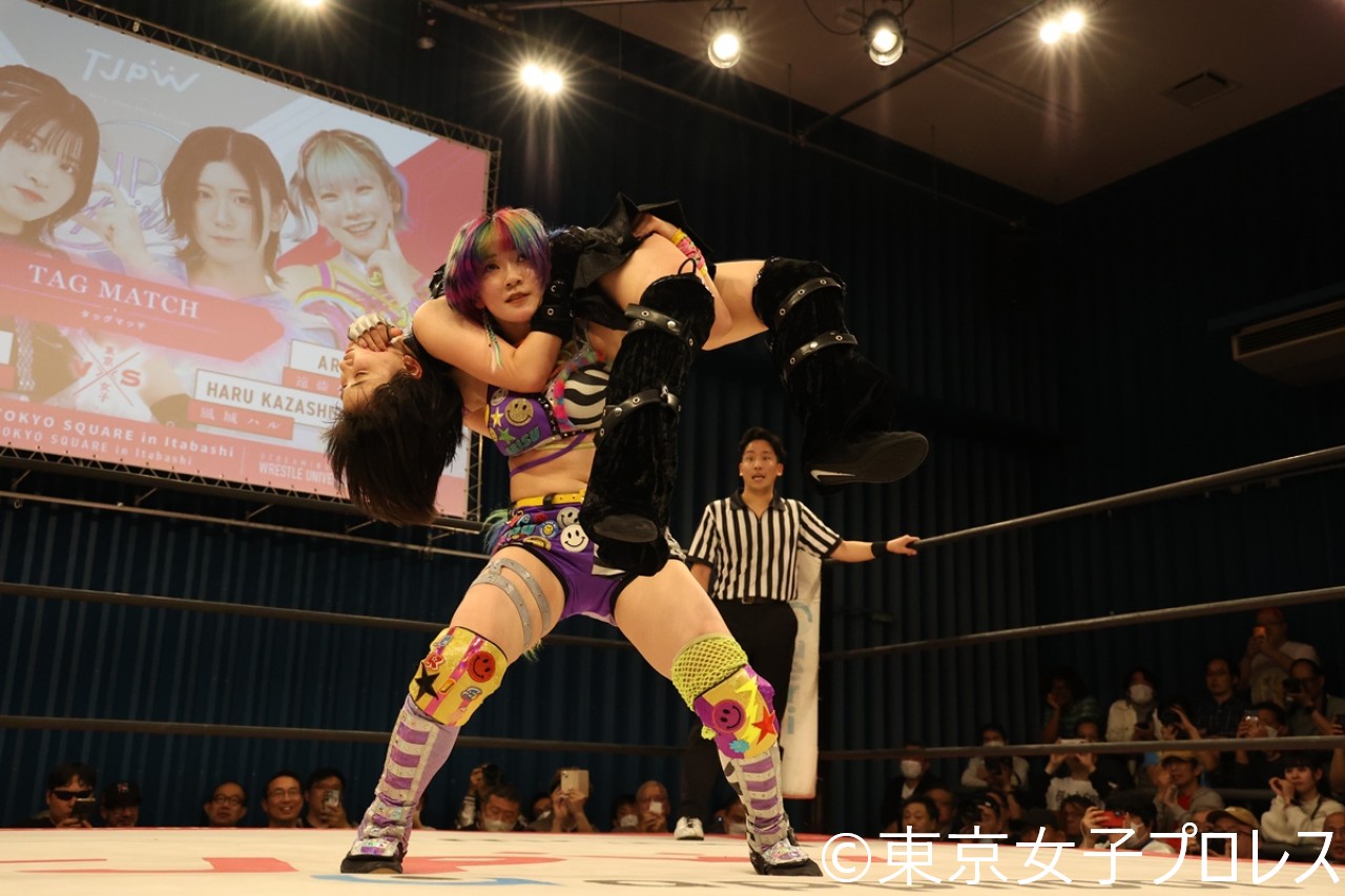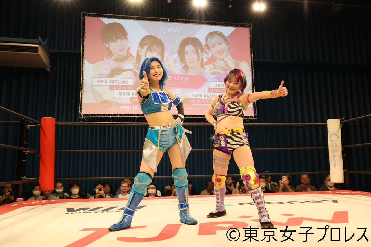 東京女子プロレスが4月18日、東京・TOKYOSQUARE in Itabashiでスピンオフ興行『TJPW INSPIRATION』を開催した。遠藤有栖が荒井優希の持つプリンセス・オブ・プリンセス王座への挑戦を表明。辰巳リカは渡辺未詩との白昼夢でジ・インスピレーション(ジェシー・マッケイ&キャシー・リー)が保持するプリンセスタッグ王座へのチャレンジをアピールした。