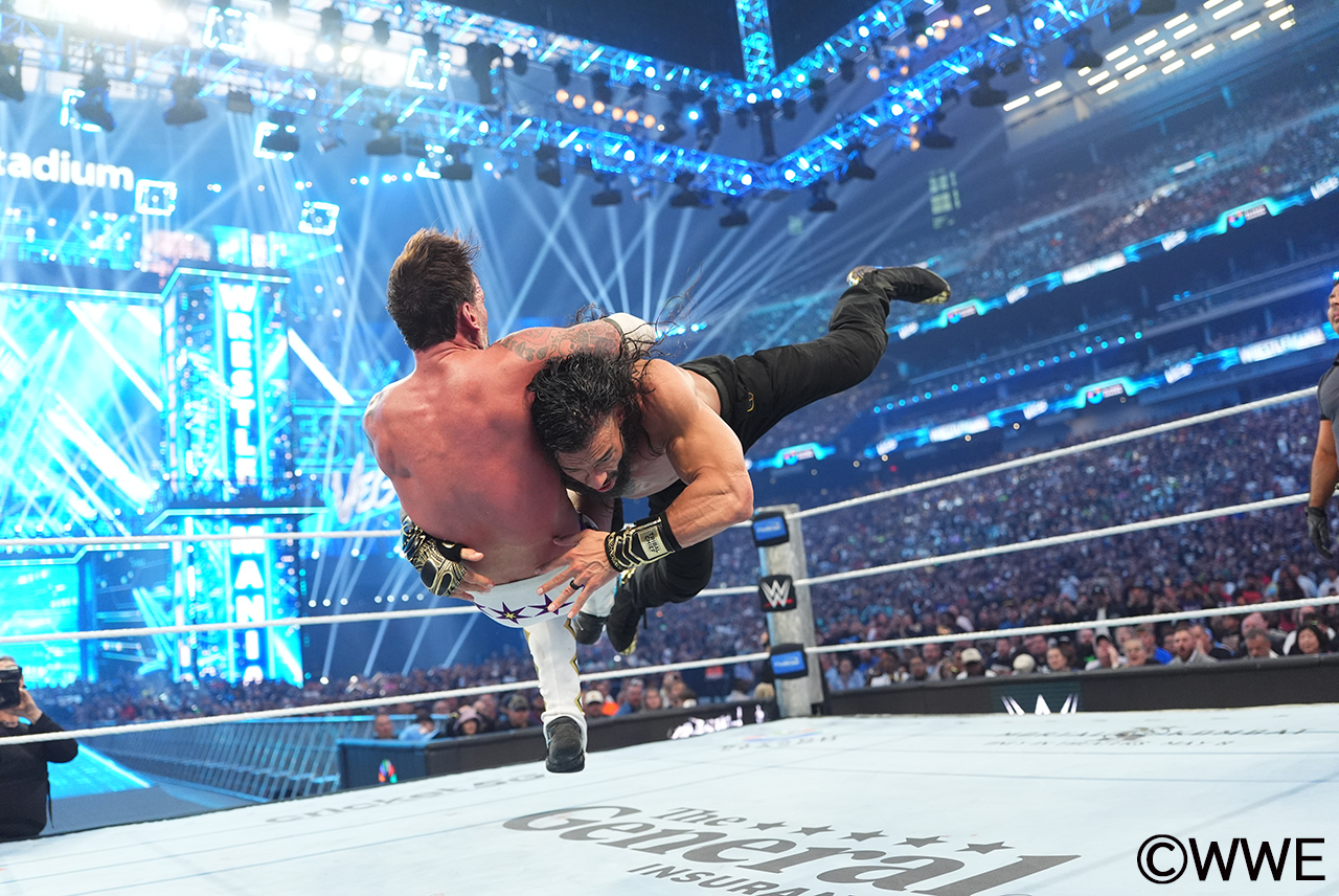 今年のレッスルマニアの大トリを任されたのはCMパンク対ローマン・レインズによる世界ヘビー級王座戦であった。前日のメインイベントであるコーディ・ローデス対ランディ・オートンと同様に、このふたりにも長い歴史と複雑な感情があるという意味でも大トリにふさわしいカードと言えるだろう。
