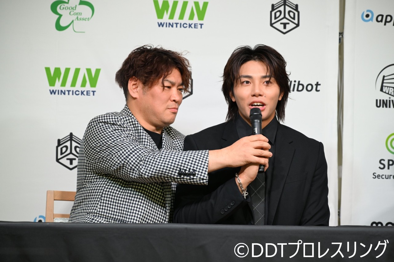 DDTプロレスが4月22日、東京・千代田区の神田明神文化交流館でシングル最強決定トーナメント『KING OF DDT 2026』に向けて記者会見を開いた。初出場のTHE RAMPAGE・武知海青が1回戦で対戦する男色ディーノとの真っ向勝負を宣言した。