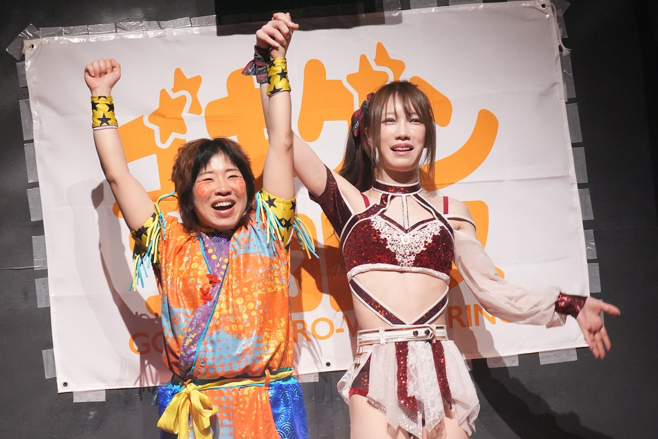 その後、続々と選手たちが入場すると、イス取りゲームに突入して梨杏が勝利。望月彩リングアナによるゴキゲンプロレス応援し隊(一口スポンサー)の読み上げや、この日はスタッフとして参加していたPURE-JのSakiリングアナが“占い師レスラー”チェリーが鹿島を占った結果をアナウンス。普段は試合後に行なわれる「だるまさんがころんだ」が試合中に開催されてSAKIが勝利し、トランザム★ヒロシが登場すると浜辺纏との柔道対決に。浜辺が見事な背負投で一本を取ってみせた。