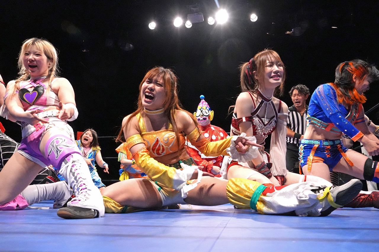 試合開始から1時間を超えて誰も失格になっていないことから、マイクを持った米山は「岡田社長に勝った選手がこの試合の勝者」とルールを変更。エプロンで光留と岡田社長がもつれているところを蹴り飛ばして場外に転落させた鹿島が勝ち名乗りを受けるも、米山は「特別X」の存在を明かして試合続行を宣言。吏南が現れて鹿島&シン・鹿島と対峙する。光留と岡田社長の争いに吉野レフェリーが巻き込まれてコーナーに押し込まれると、選手たちに抱え上げられた松澤さんがハイアングルのブロンコバスターで3人をまとめて圧殺。ノーコンテストが宣告されて1時間17分に及ぶ試合に終止符が打たれた。全選手参加による借り物競争はシン・鹿島が勝者に。エンディングでマイクを持った米山は目を潤ませて鹿島への思いを伝えると、鹿島はペコリと頭を下げて「あらした!」と返答した。