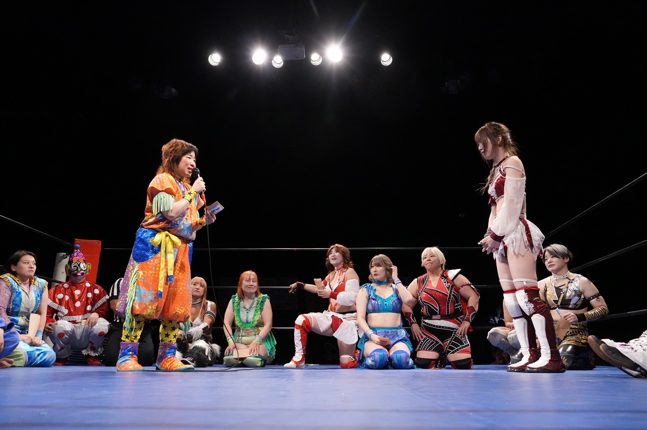 21日、2週間前に急きょ開催が決まった米山香織主宰のゴキゲンプロレスによる鹿島沙希の送別会は、時間差入場のロイヤルランブルによるワンマッチ興行。まずは米山と鹿島のシングル対決から始まり、米山が勝てば鹿島は引退撤回、鹿島が勝った場合は米山が即引退という条件で試合がスタートするも、わずか9秒で鹿島が丸め込みで勝利。米山の引退セレモニーに突入するが、“鹿島のわがまま”として試合続行となる。